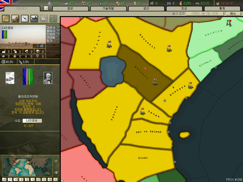 (보통 최소조건에는 그 나라의 수도가 있기 마련인데 이 나라는 나이로비가 최소조건에 포함 안되어 있더군요. 나이로비 없이 독립시켜도 알아서 수도 정하고 별 문제없긴 합니다.)