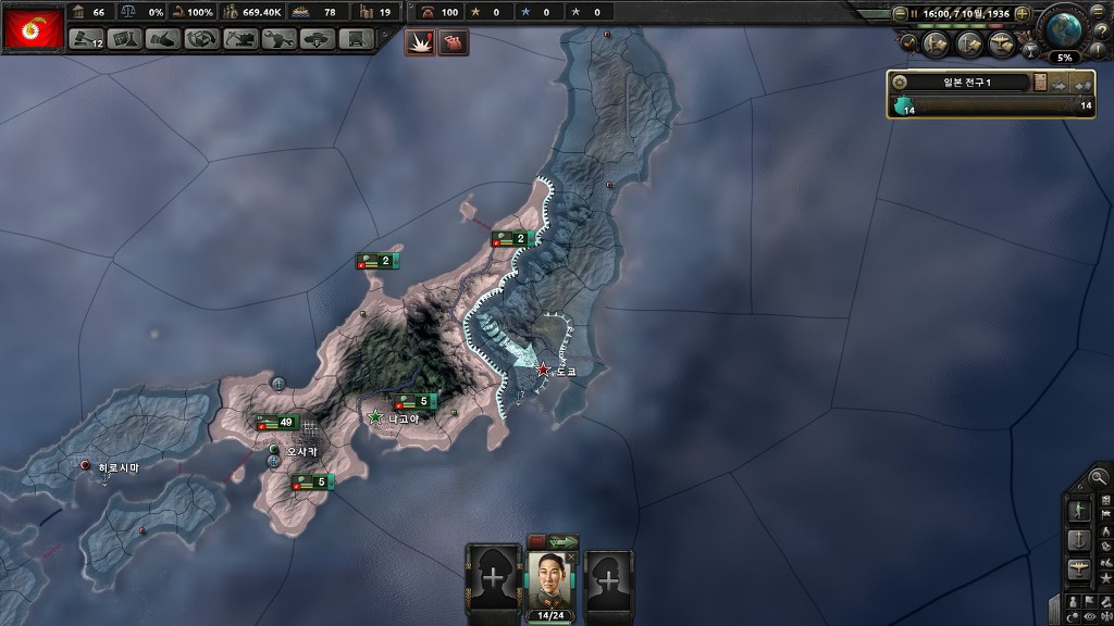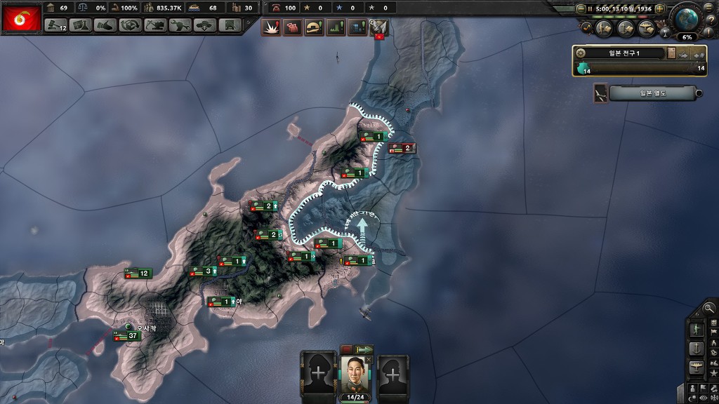 도쿄근방에는 일본제국의 신규사단이 없어서 금방 먹습니다.