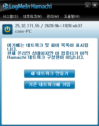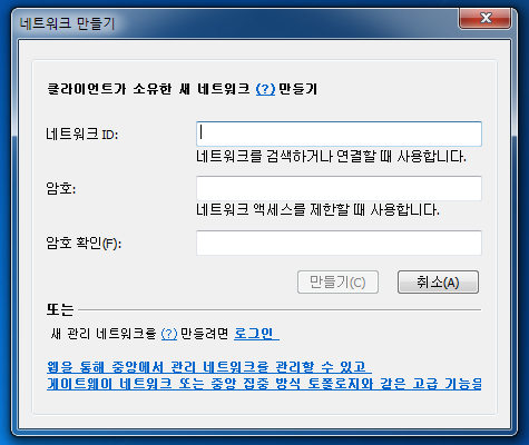 그럼 참가자는 '기존 네트워크에 가입'을 클릭하여 호스트의 네트워크 아이디와 암호를 입력합니다.