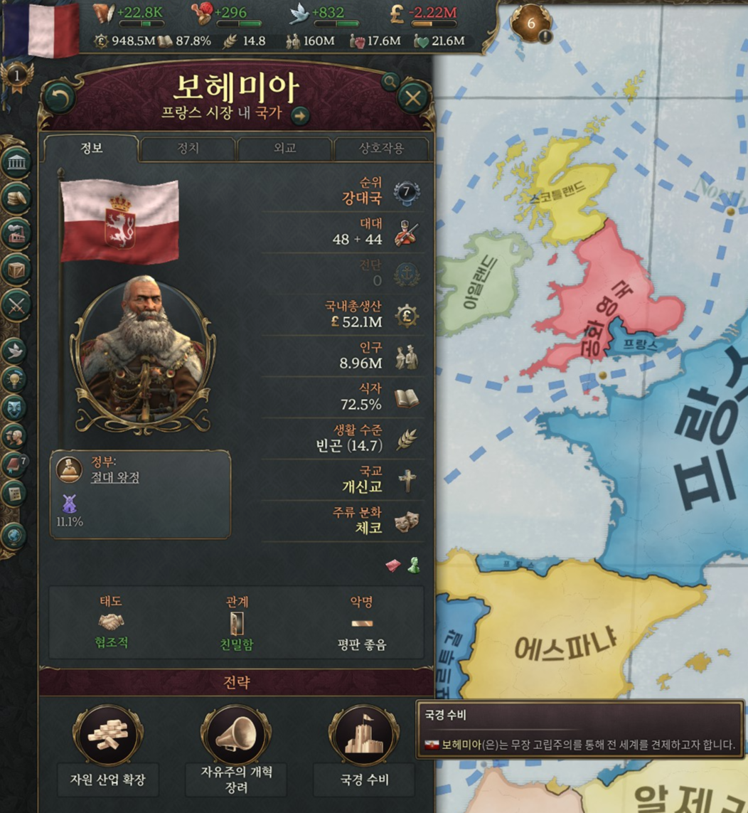 - 가끔 '강력한 보호국을 보유중임'이라는 항목이 뜨기도 하는데