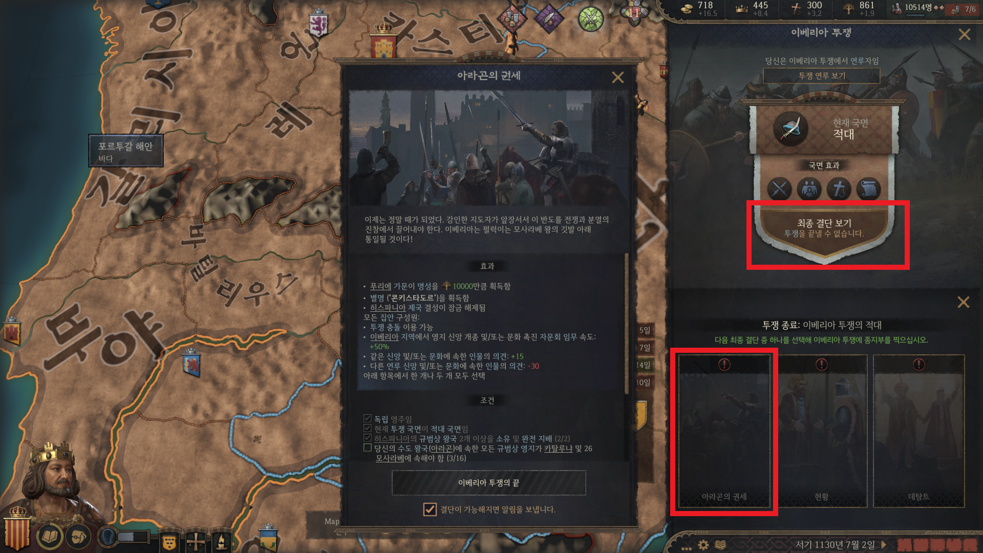 '이베리아 투쟁 최종 결단'은, 기존 결단(F8) 목록에 없어요. 버그인줄 알았는데,