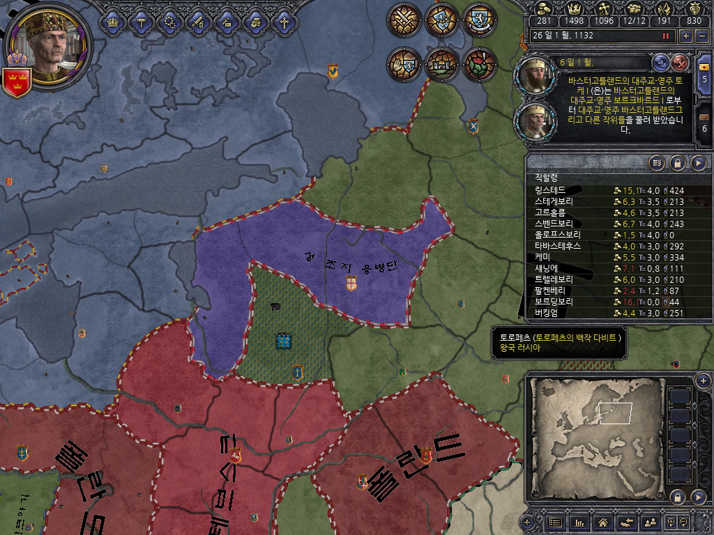 그래서 본인의 데쥬레가 아니며, 중요성이 떨어지는 곳에 용병단을 박아두는게 좋습니다.