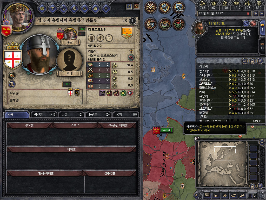 용병단이 처음에 가신이 0명일겁니다. 근데 저렇게 영토를 가진 상태에서 조금 시간이 지나면 가신들을 고용하더군요.