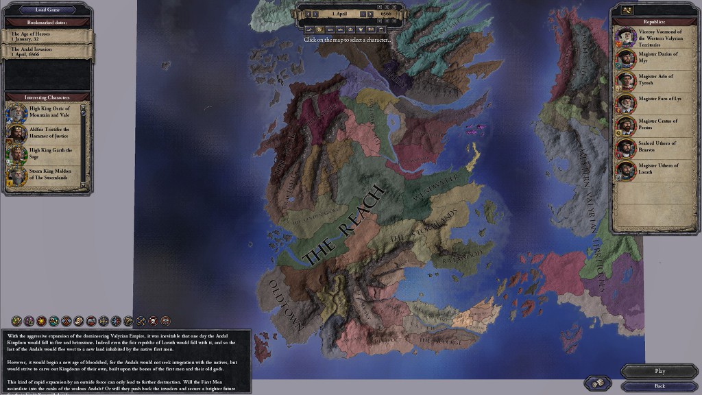 지역적으로는 웨스터로스 대륙만이 중심이 되는 모드입니다. 동쪽 대륙은 서로 영향을 받을 정도만 쬐금 나옵니다.