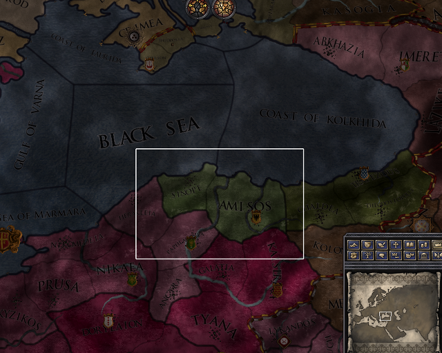 사실 저 동네는 아르메니아 말고도 위쪽 동네, 키예프로 플레이하시는 분들이 공화국으로 삼는 게 괜찮습니다. 위치가 안 맞으면 살짝 옆의 'Abkhazia'를 공화국으로 삼으셔도 되고요. 저 두 공작령 중에 하나를 공화국으로 삼으면 거의 확정적으로 크림 반도에 무역기지를 박는데 거긴 플레이어가 굴릴 수 있는 최고의 꿀땅 중에 하나거든요. 키예프 근방의 나라를 하시는 분이라면 반드시 직할령으로 삼아야만 하는 땅이 바로 크림 반도입니다. 흑해의 플랑드르죠. 크림 반도를 직할령으로 굴리고 있자면 왜 러시아가 이 땅을 두고 다른 나라와 치고박는지 이해가 될 정도입니다. 크림 반도를 직할령으로 삼았는데 거기에 내 봉신의 무역기지까지 박힌 상황이라면 세금이 콘스탄티노블의 수입을 뛰어넘습니다.