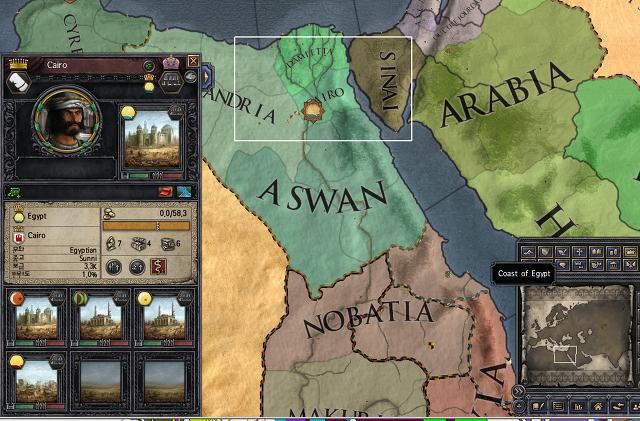 이집트입니다. 교도소 운영으로 하려고 할 때, 절대로 공화국으로 삼으면 안 되는 대표적인 땅, 'Cairo' 공작령이죠. 공작령 자체가 무엇보다 홀딩의 수가 엄청 많습니다. 저길 줬더니 나중에 공화국 반란 때마다 바랑기안 급의 용병들이 튀어나오더군요. 처음 봤을 때는 어이가 없어 입이 벌어졌습니다. 그래도 그것만 제외한다면 입지 자체는 나쁘지 않습니다. 제 경우는 저 공화국이 바그다드와 사나 방향으로 무역기지를 박았습니다. 사나, '공작령 주제에 무역기지 두 개를 가짐'이라는 말이 모든 걸 설명합니다. 사나에 무역기지까지 박히면 동맹이 없이도 돈으로 압바스와 맞짱을 뜰 수 있습니다. 생각해보면 저길 공화국으로 삼는 건 하이리스크, 하이리턴이겠네요.