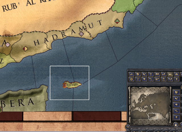 위의 사진은 사나 공작령입니다. 거기 속하는 섬 중에 하나입니다. 사나 공작령에 속하는데 왜 올렸죠? 그렇게 질문하실지도 모르지만 저 섬은 그야말로 사기급 특성을 가지고 있습니다. 저는 감히 사나 공작령이 사기라고 하는 이유 중에 하나가 저것 때문이 아닐까 생각합니다. 왜 저 섬이 사기인가? 저 섬을 점령하면 무려 명분 뿐인 공작령 작위 'Socotra'를 생성할 수 있습니다. 명분 뿐인 왕위가 아닙니다. 공작위에요. 그 말이란 당장 저 작위만 들고 있으면 상업공화국으로 마음에 드는 곳, 아무 곳이나 공화국으로 박을 수 있다는 겁니다. 심지어 그 쓸만한 공작위가 이름 뿐인 작위까지 해서 동화조차도 안 됩니다.