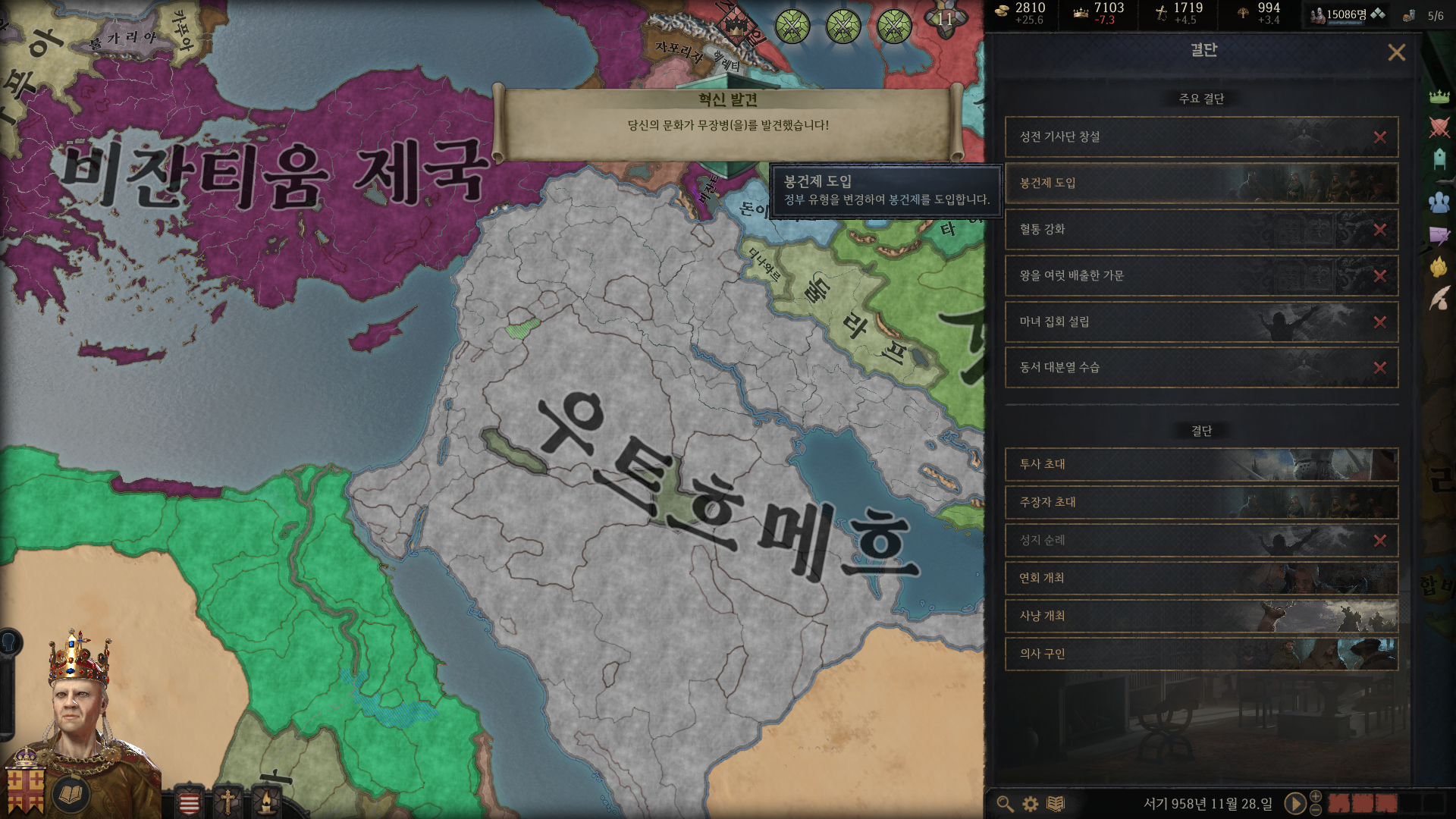 당연히 결단 창을 열어봐도 봉건제 도입은 아직 실행할 수 없죠.