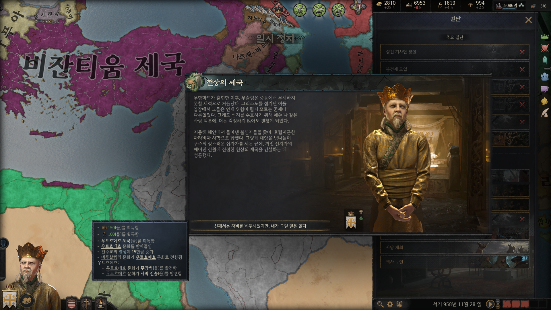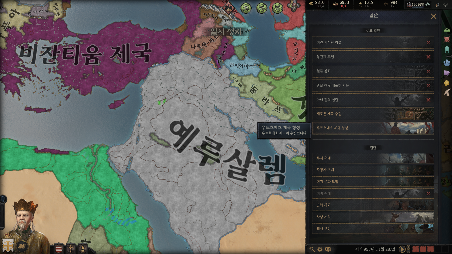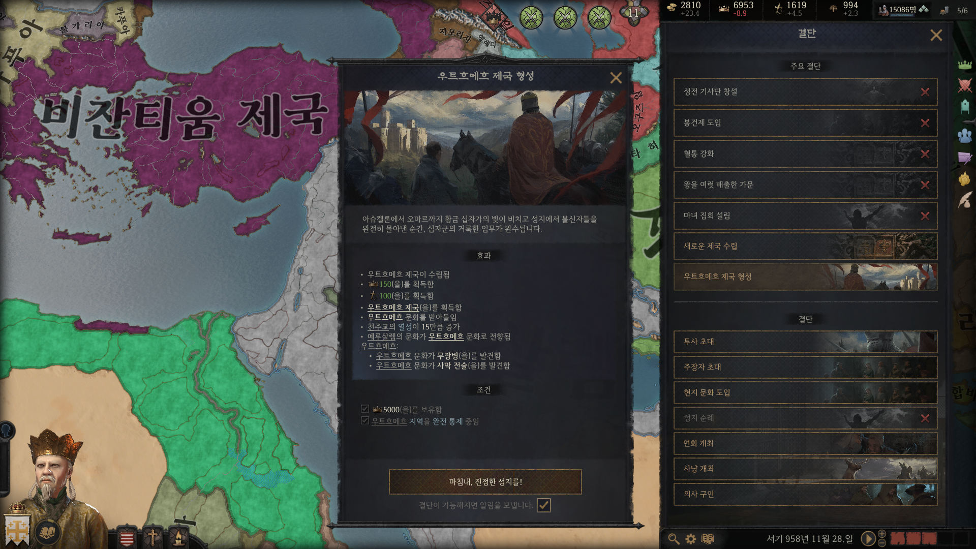 물론 형성 조건이 까다로운 편이기 때문에(천주교라든지 십자군 시작이라든지) 우트르메르 제국을 빠르게 만들려면 여러모로 운이 필요하다는 게 가장 큰 문제죠;