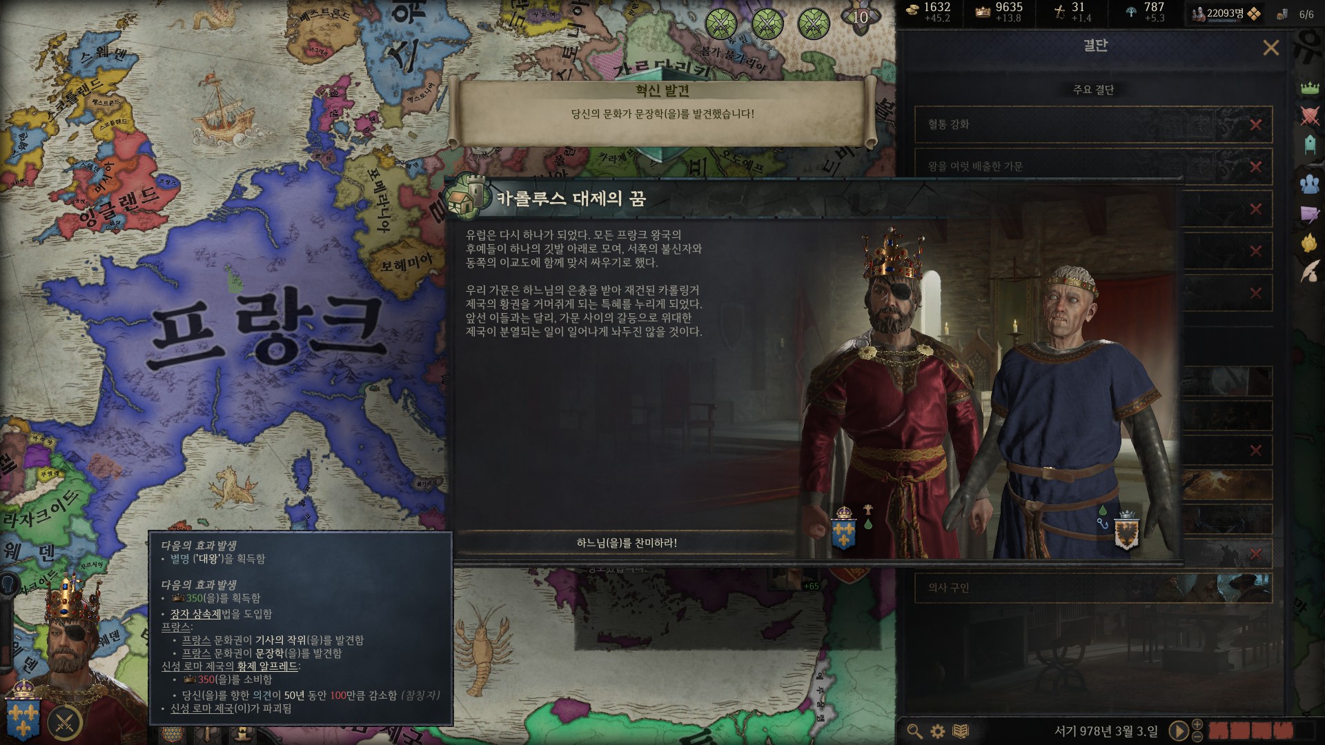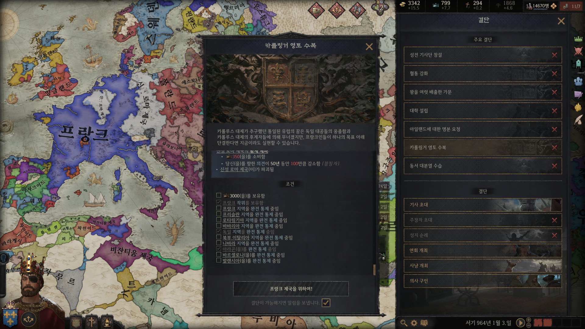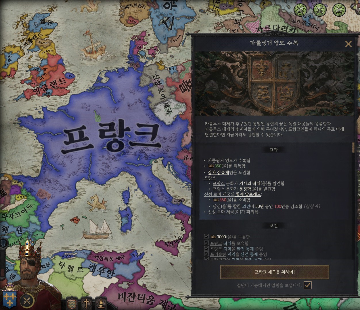 2. 프랑크 제국 작위를 들고 결단 조건을 만족한 후에