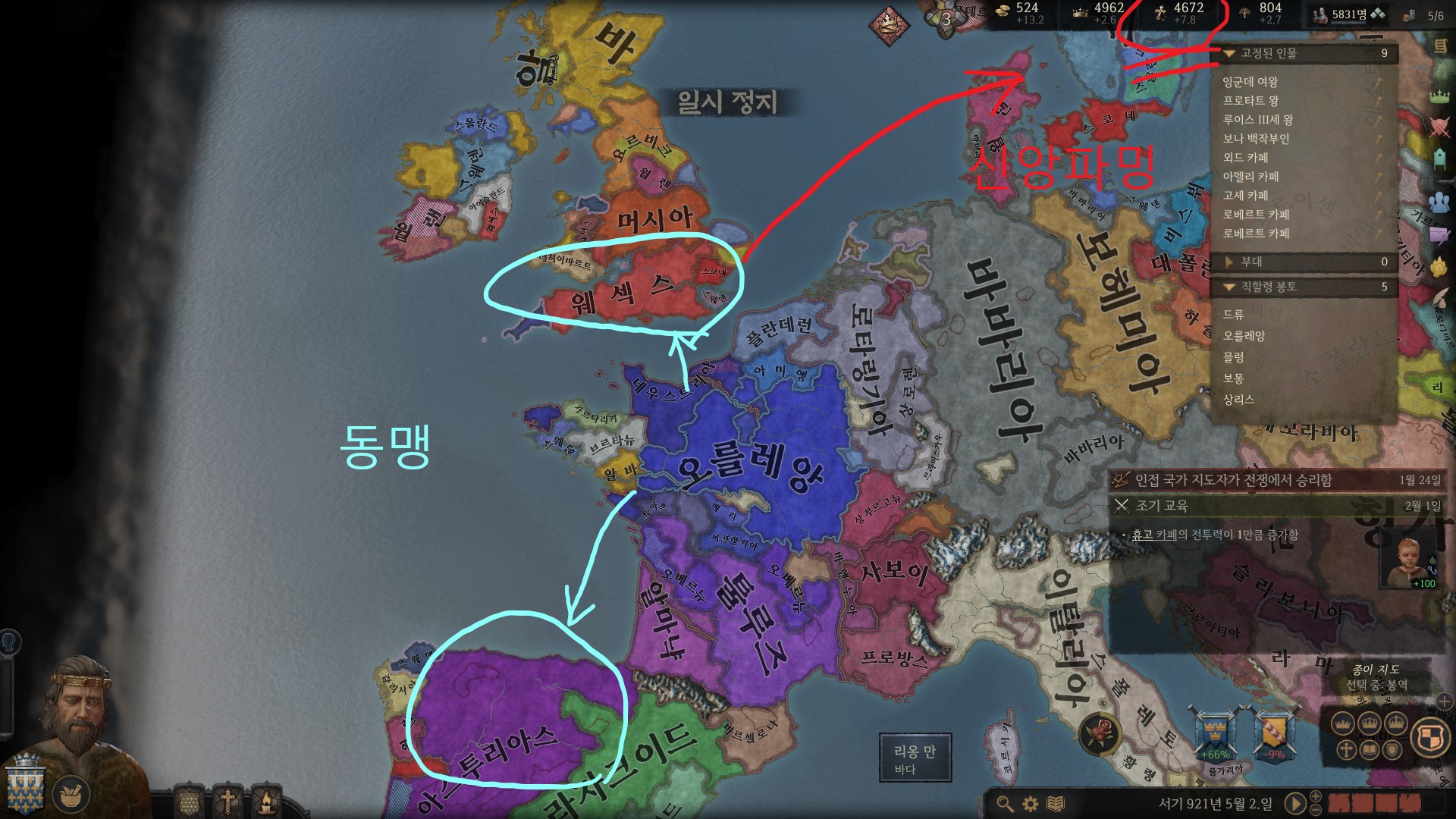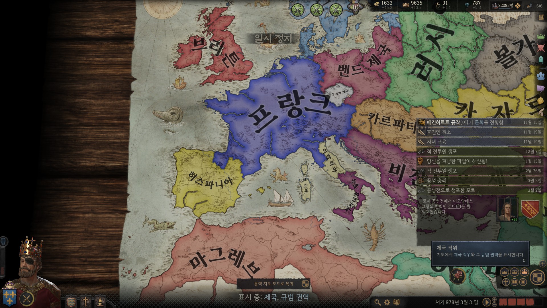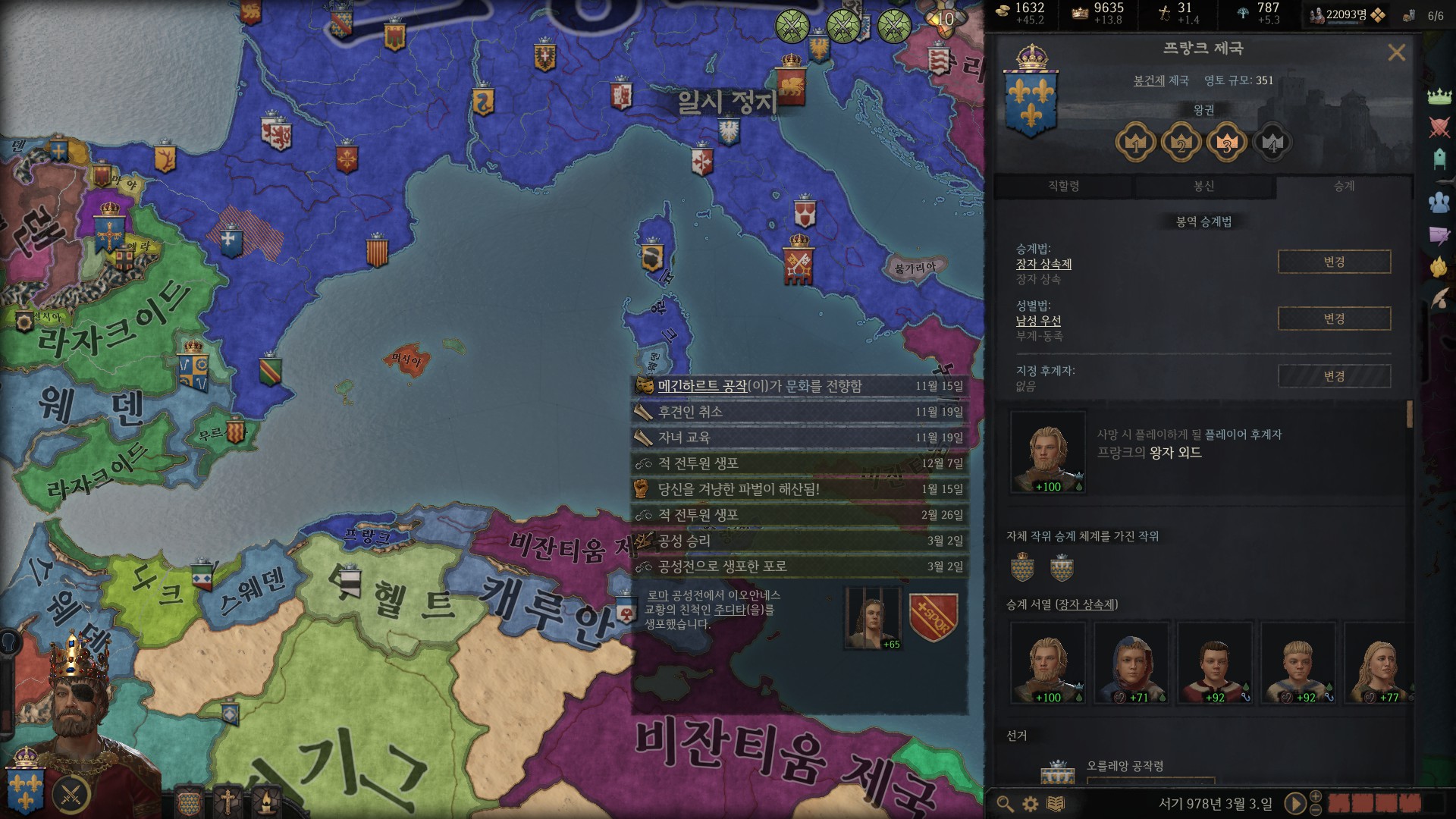 카롤링거들이 워낙 똥을 싸놔서 여기저기 빈 구멍을 채워야 하는게 문제죠.