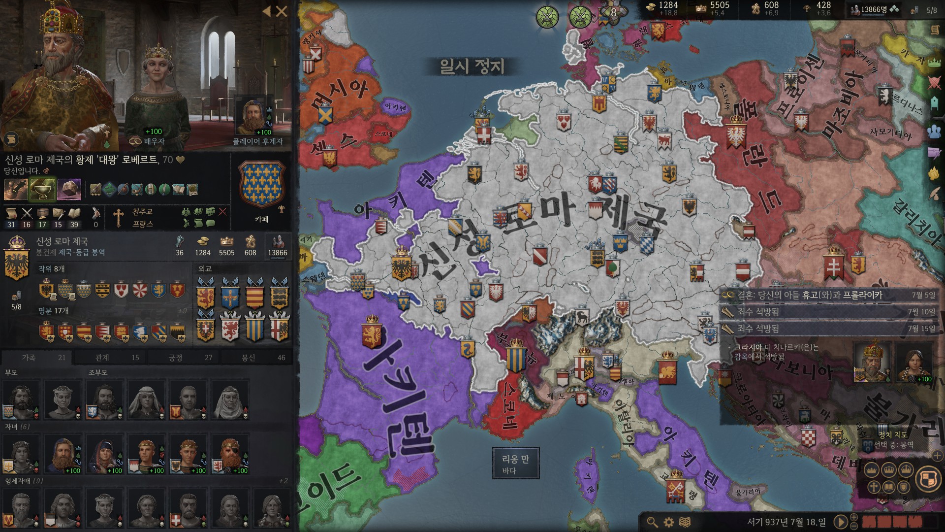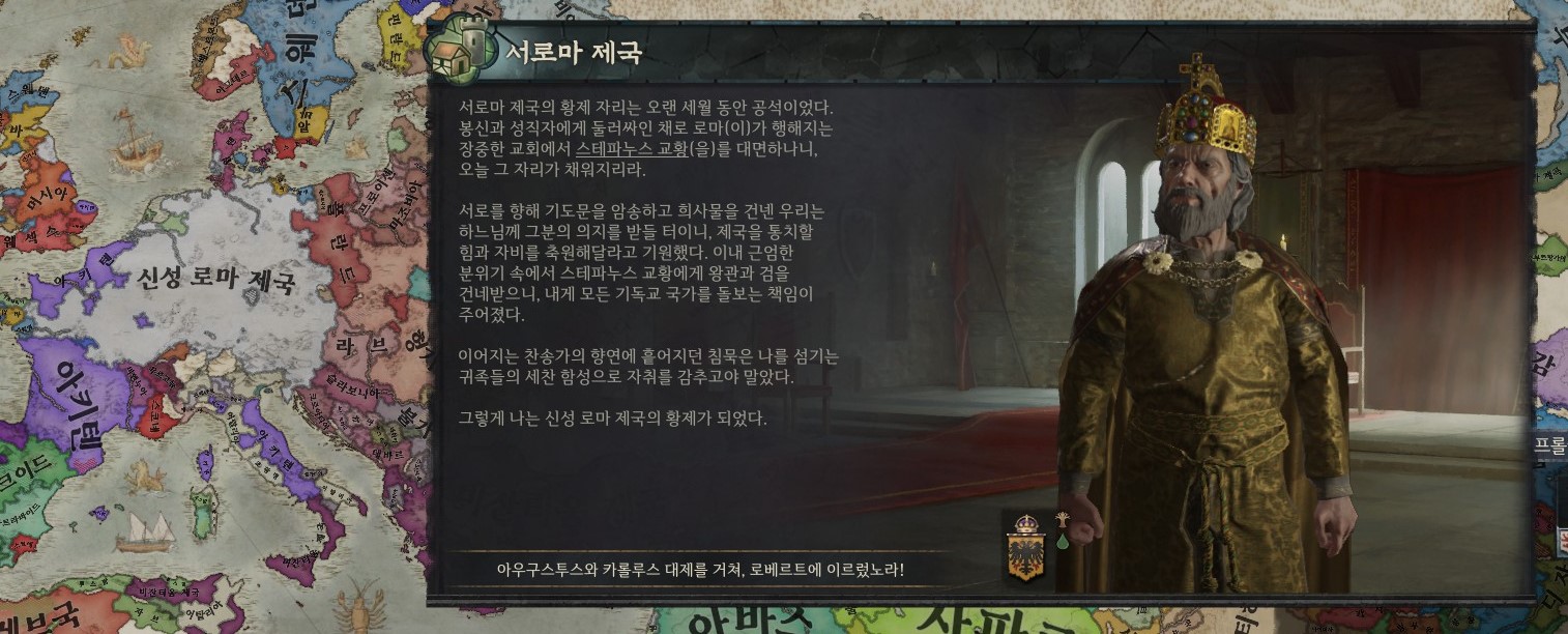 그 규범권역의 왕작위를 생성해서 들고 있으면 (저는 로타링기아 + 바바리아 왕국)