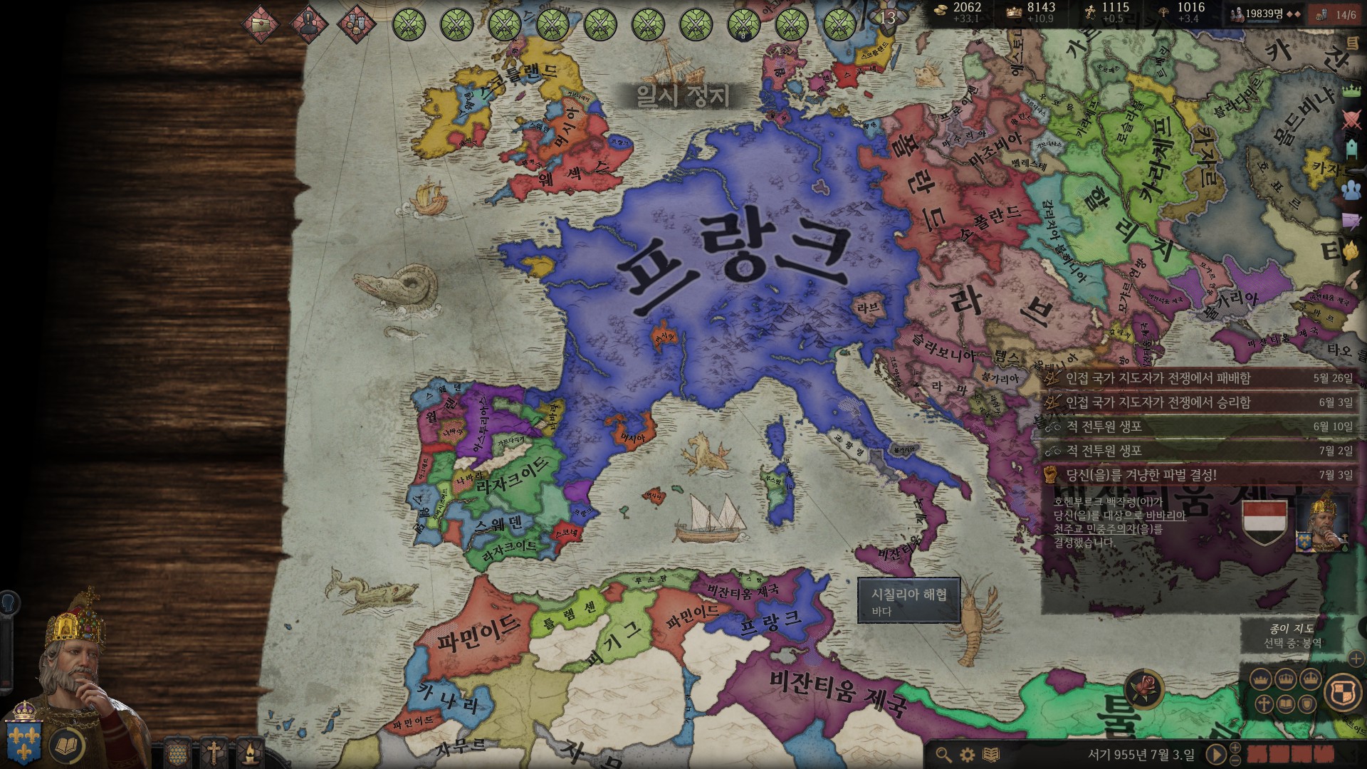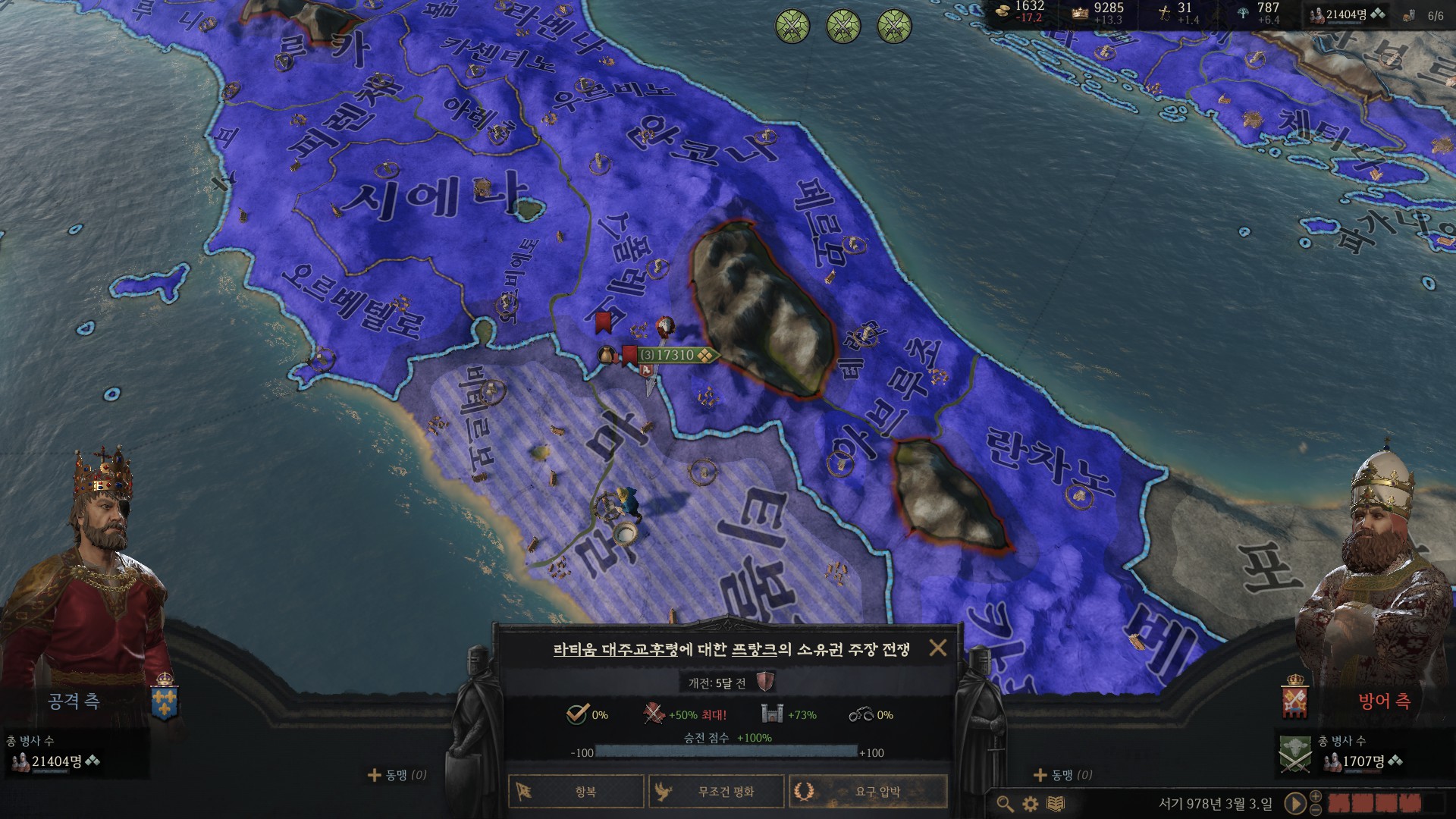 지도보시면 서프랑키아 왕작위는 그냥 숨만쉬면 따올수 있는 상태지만