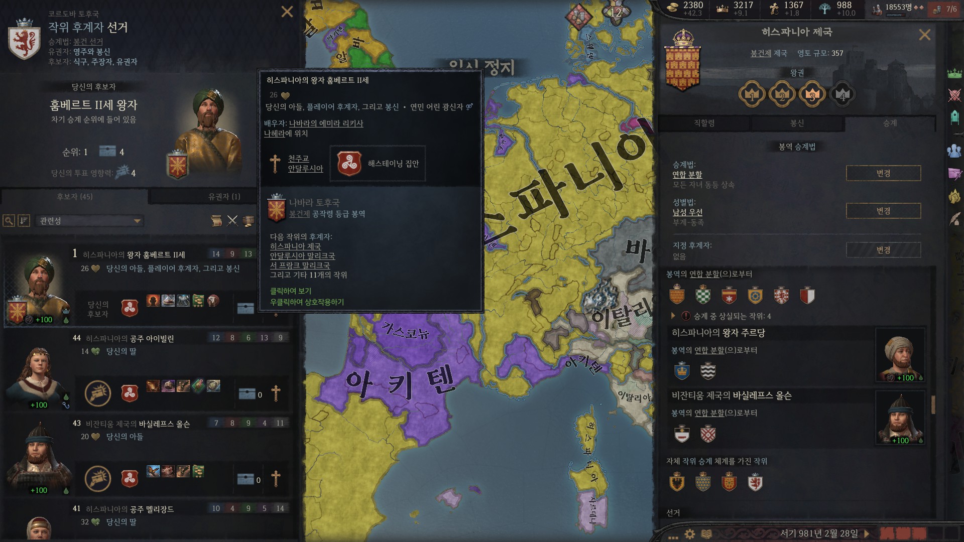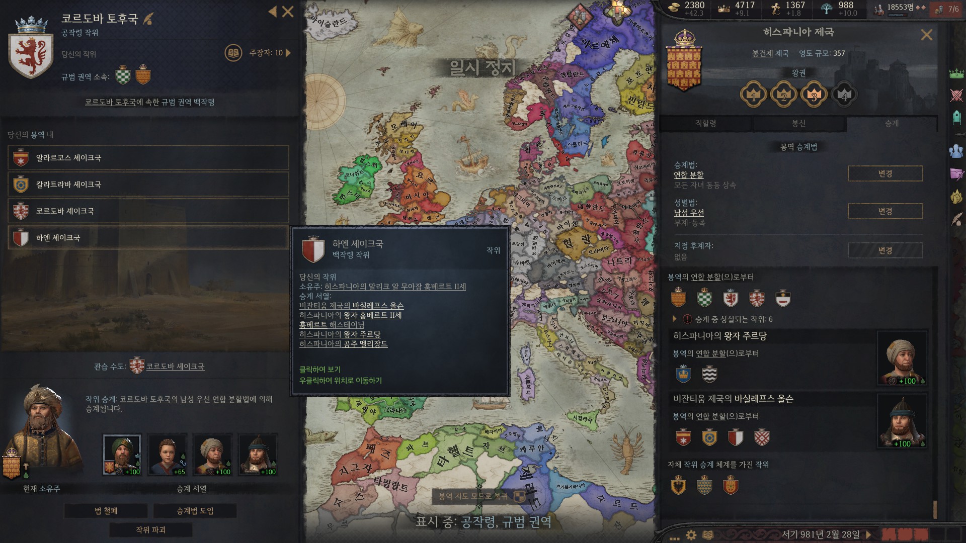 코르도바 공작령 내의 모든 백작령은 제겁니다. 제 마음대로 할 수 있는 겁니다. 유권자(1) ㅋ