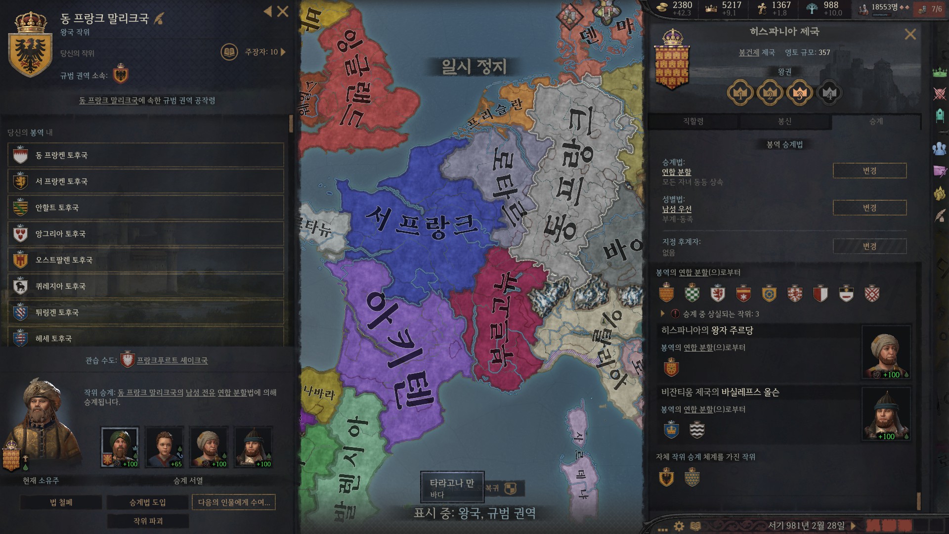 힌트는 게임 시작부터 아들이 둘인데 서프랑크와 아키텐을 몰아가져가는 프랑스 놈들 보고 알았지요...