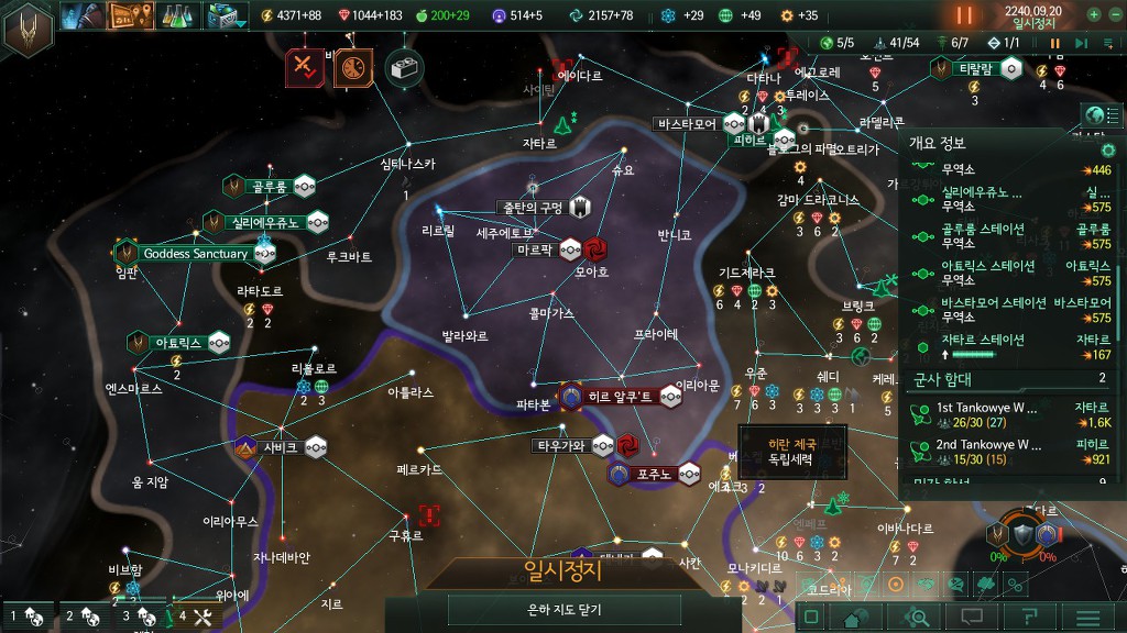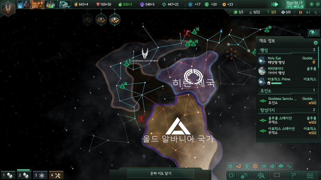 성계는 광물위주로 늘리되, 다른 자원도 효율이좋다면 먹고 제국 진출방향도 고려하며 국경을 확장합니다.