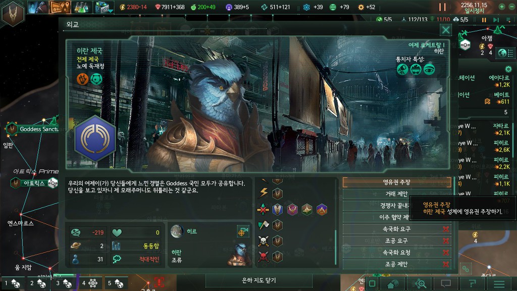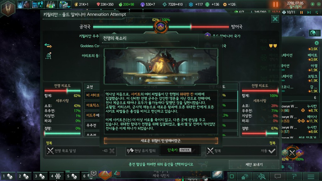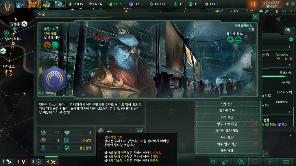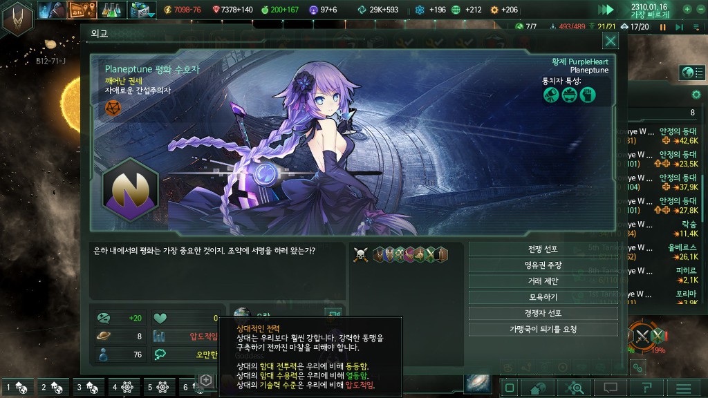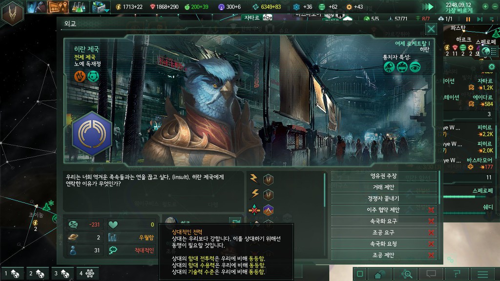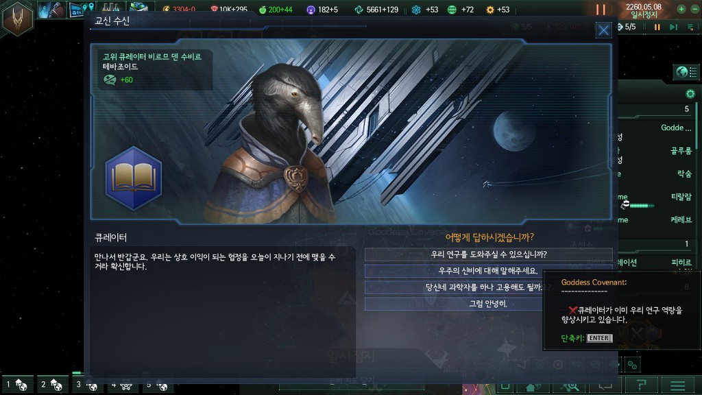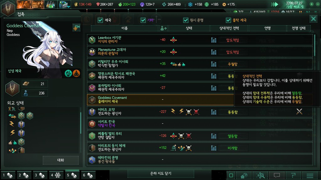 1제국 (우월한제국)과는 연구협약을 꾸준히 해줘서 연구속도에 이점을 챙겨주는게 좋습니다.