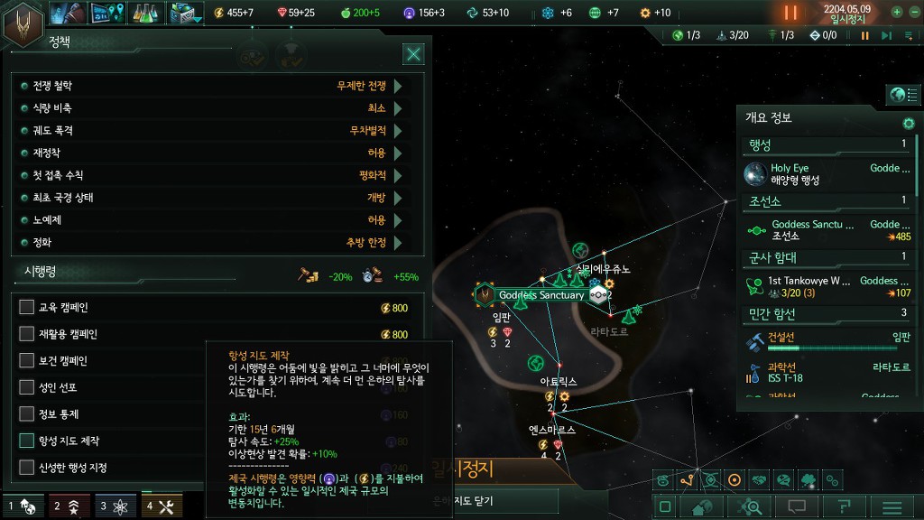 과학선 2대를 뽑앗을때 쯤 시행령 [항성지도제작]을 사용하면 좋습니다.