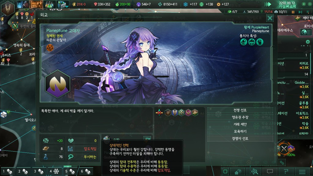 은하계로 진출하려면 어느제국과 국경을 붙일수 밖에없는 상황이엿습니다.