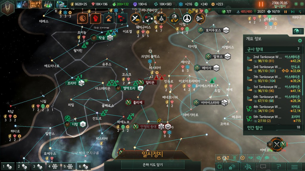 이 처럼 제국 확장과 운영을 잘해내시다보면 후반부는 거의 하던대로만 하시면 됩니다.