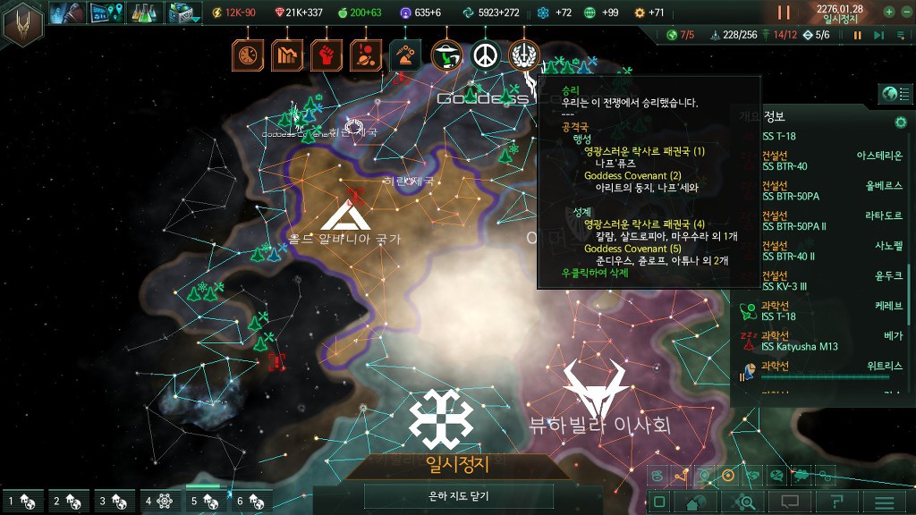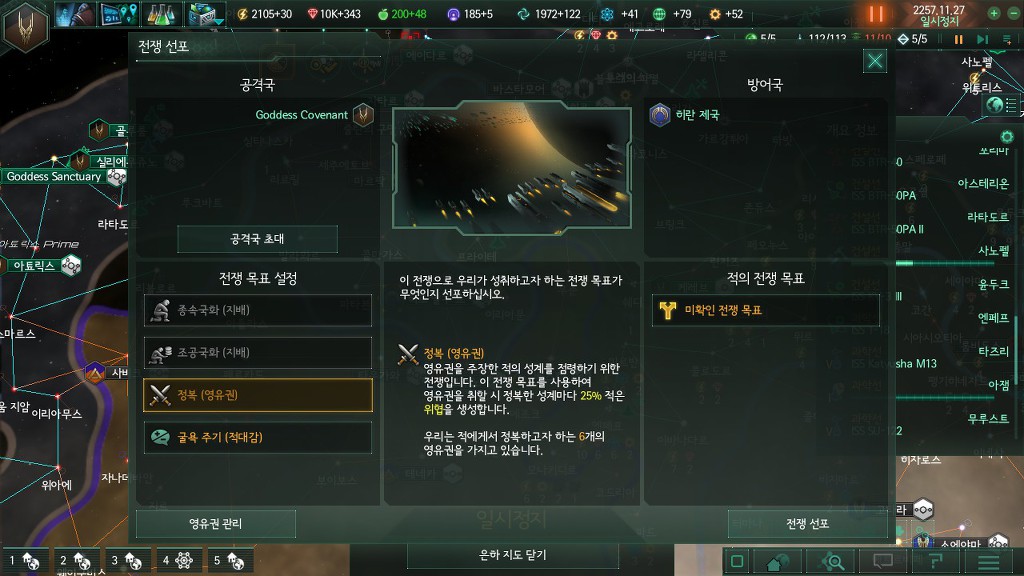 승리를 하려면 영유권이 설정된 모든 항성계를 점령해야하므로 무리한 영유권설정은 좋지않습니다.