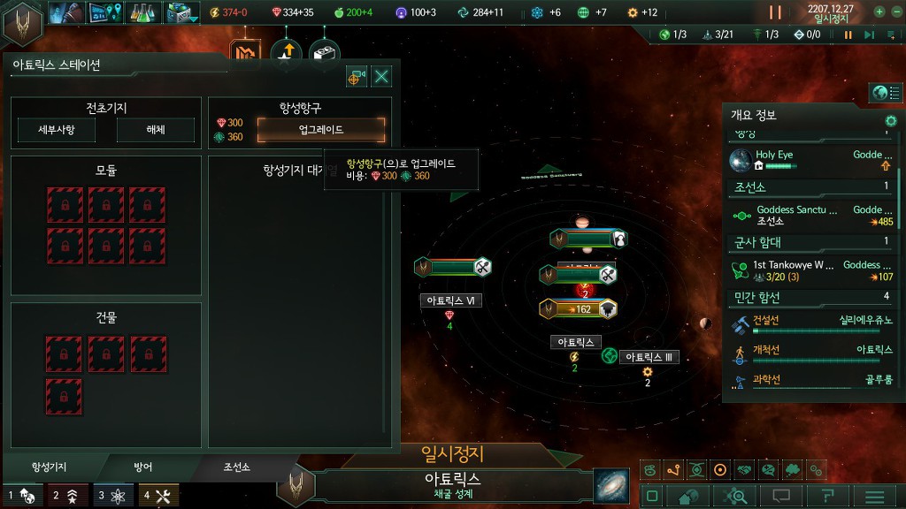 광물이 적절히 남아돌아서 300의 여유가 있을때 거주중인 행성의 전초기지를 업그레이드합니다.