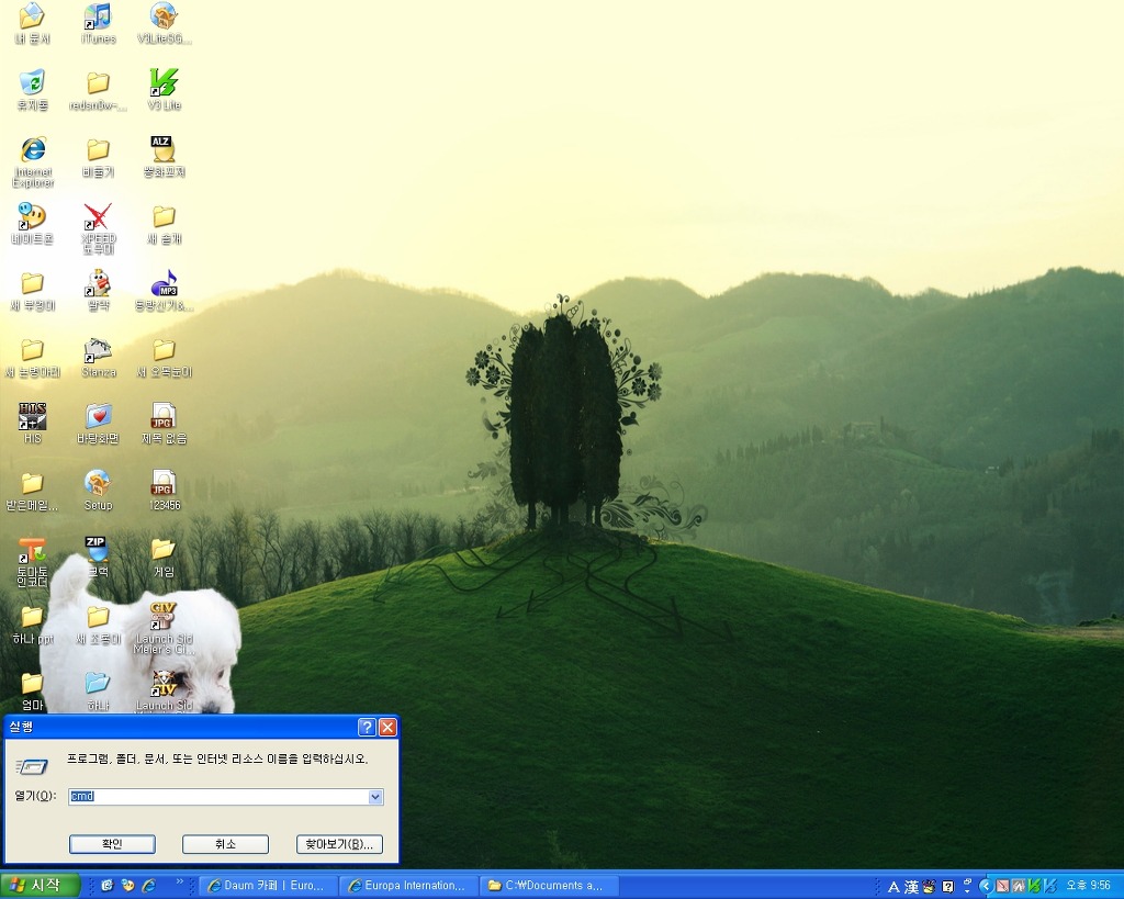 실행창에 cmd라고 입력한후 확인을 누릅니다.