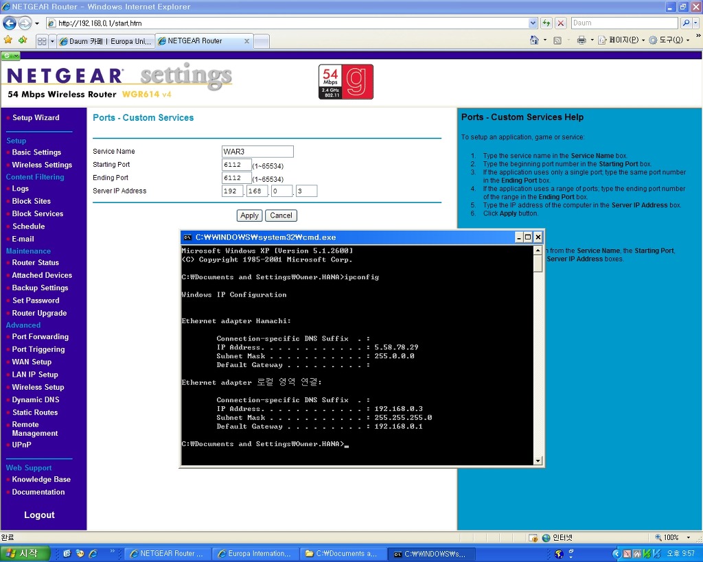 Ps 혹시 워크래프트 3 베틀넷에서 공유기인데 방을 생성하고 싶으시면 이와 같은 작업으로 시작 번호 6112 끝 번호 6112를 입력