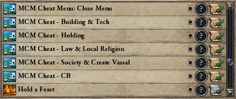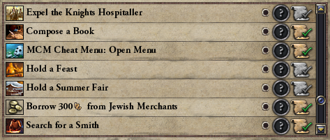 설명: intrigue탭과 외교탭에 5가지 치트 디시전을 추가해줍니다. 아래는 각 디시전에 대한 설명입니다.