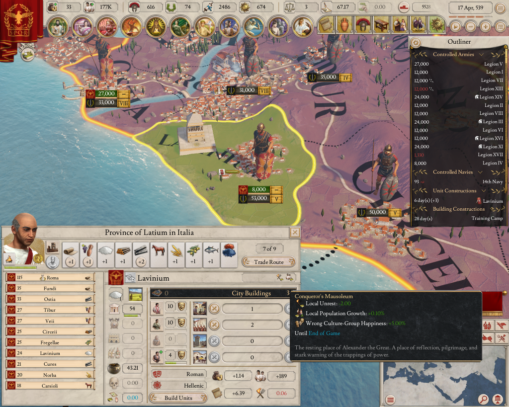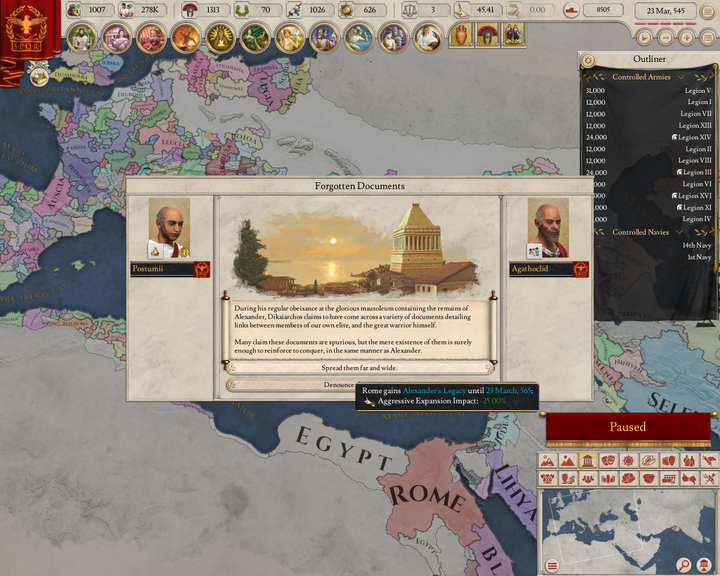 이집트쪽 정복했더니 알렉산더의 묘를 찾았다며 이탈리아에 옮길지 물어보는 이벤트가 뜹니다.
