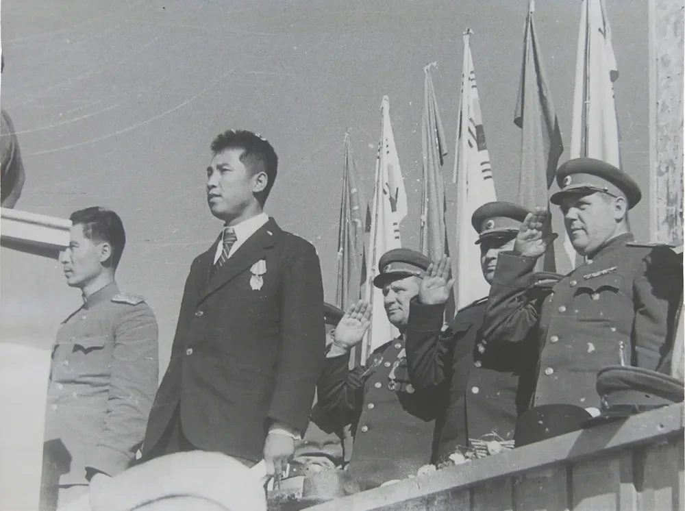 이 모든 상황을 종합했을 때, 소련군정의 방법론은 군정과 민정의 이중구조로 정리될 수 있었습니다. 한쪽에는 극동군구 제25군과 88여단, 그리고 고려인 출신 당원들로 구성된 군정이 있었습니다. 이는 군사력과 행정력, 치안과 정보, 인사 선별을 직접 장악하는 기구였습니다. 다른 한쪽에는 북조선에 모여든 반일·반왕정 세력들을 인민전선의 형태로 묶은 민정이 있었습니다. 그 결과 탄생한 것이 바로 조선인민공화국이었습니다. 그 내각수상으로 선출된 여운형은, 겉으로는 민족 통일전선의 지도자였지만 실제로는 소련군정의 대리인인 김일성과, 그 배후의 시티코프와 협조하지 않고서는 아무 정책도 추진할 수 없었습니다. 또한 이 모든 단체들을 한데 규합한 정치결사로 조국해방민주주의전선이 만들어졌습니다. 위원장은 조만식, 부위원장은 현준혁. 이 구도는 상징적으로는 민족적 최대연합처럼 보였으나, 실제로는 소련이 허용한 범위 안에서만 작동하는 제한적 인민전선이었습니다.