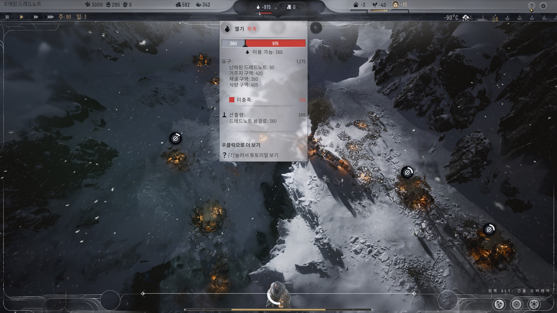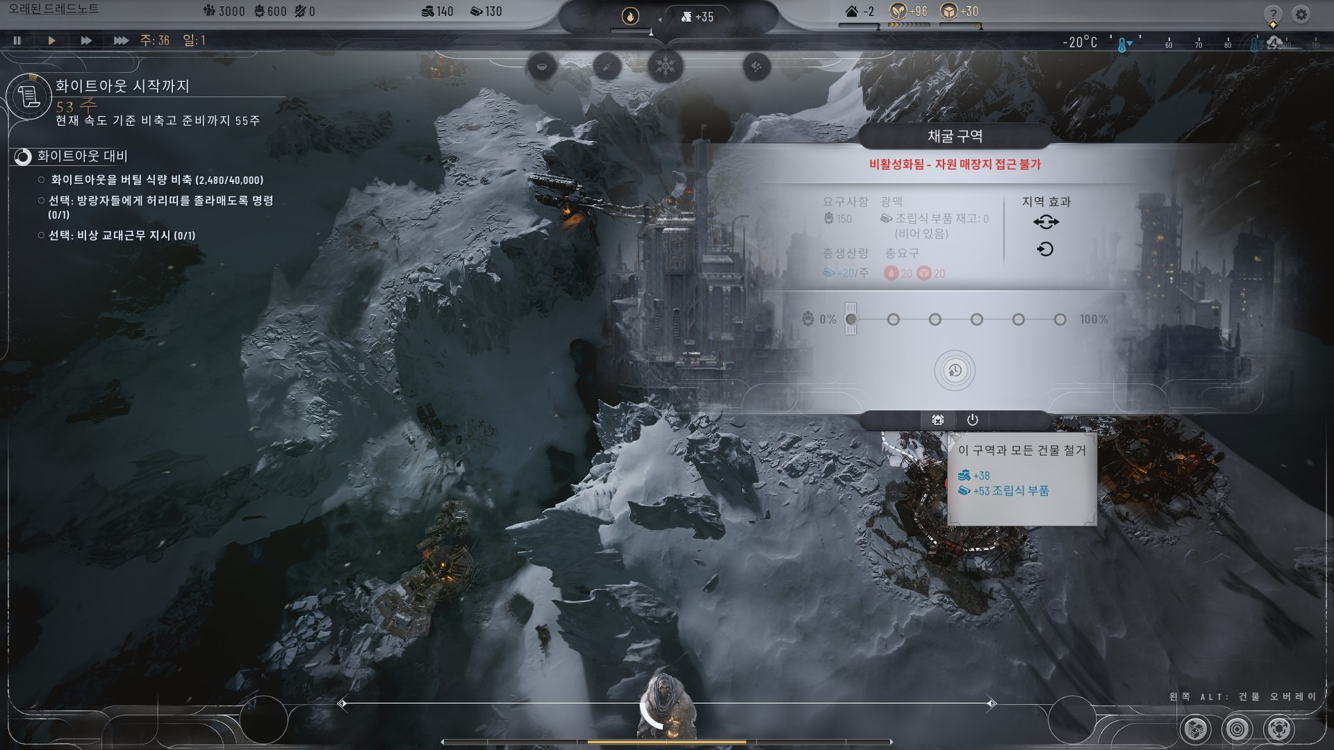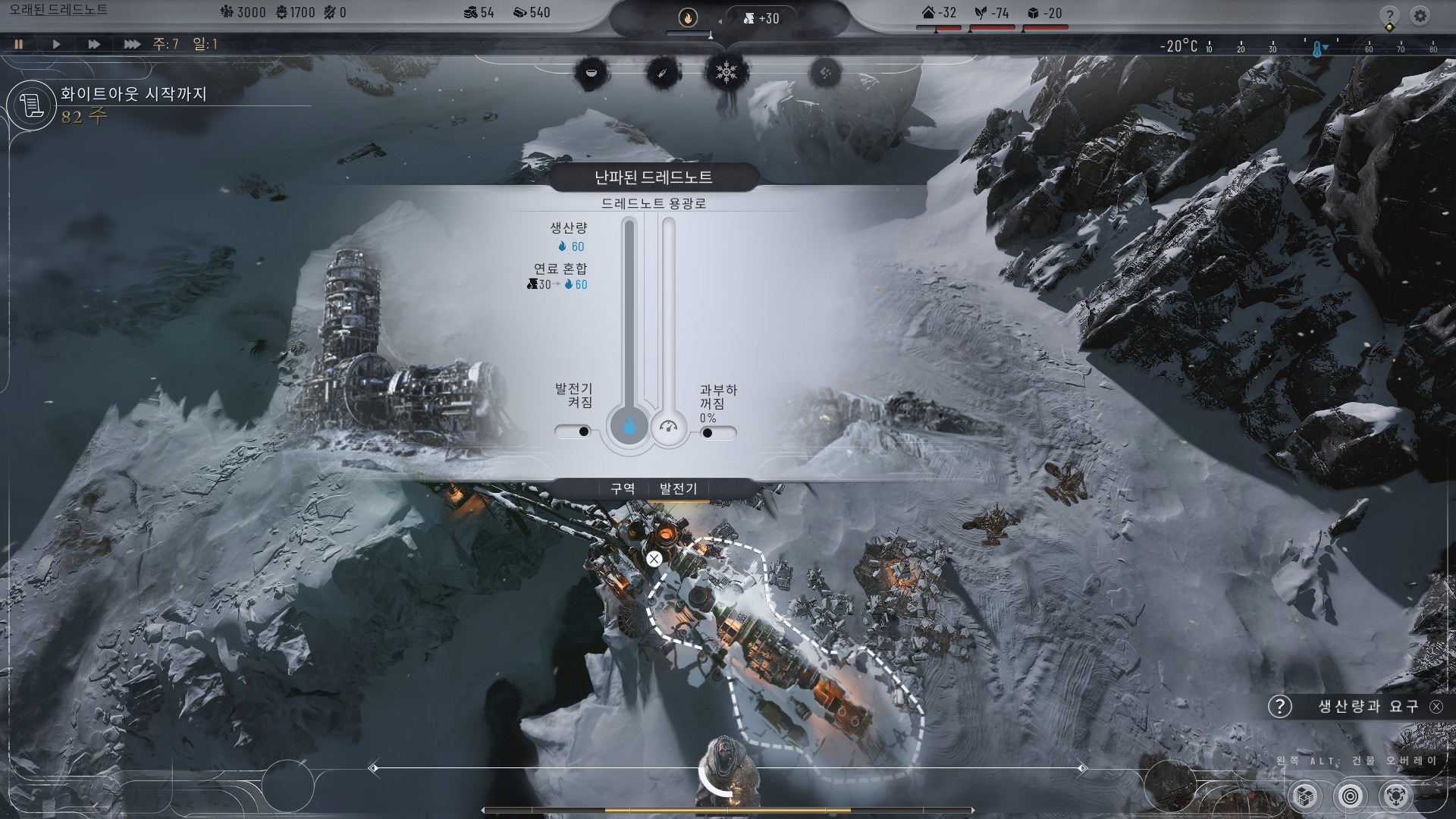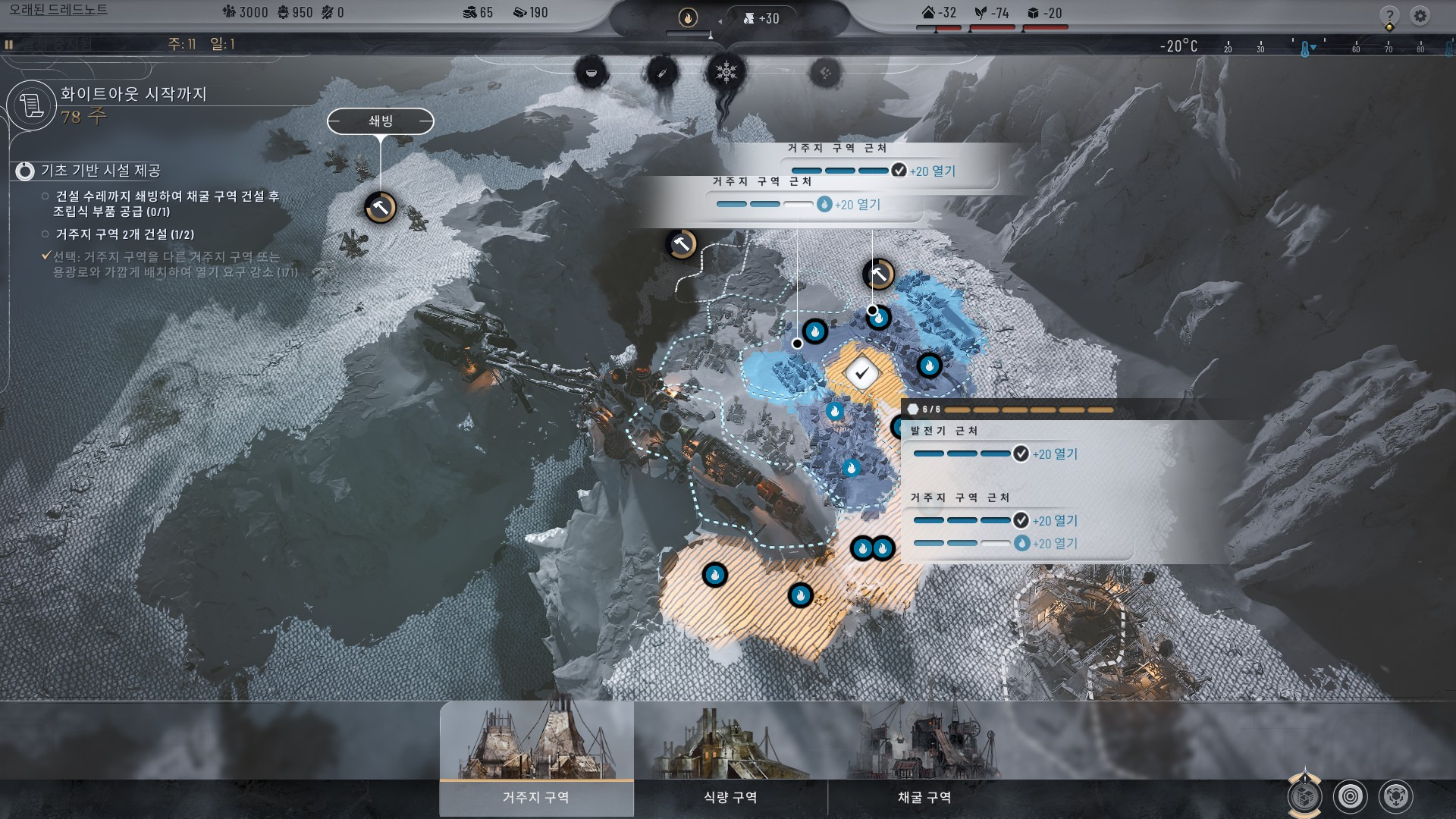 아슬아슬하게 열기 수요를 맞추는 데 성공했고, 식량 생산량도 화이트아웃 이전까지 4만을 모을 수 있을 정도로 늘어났습니다만,