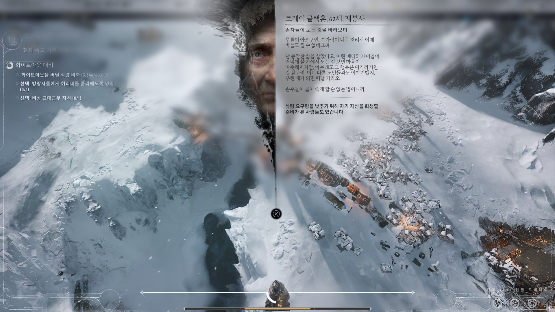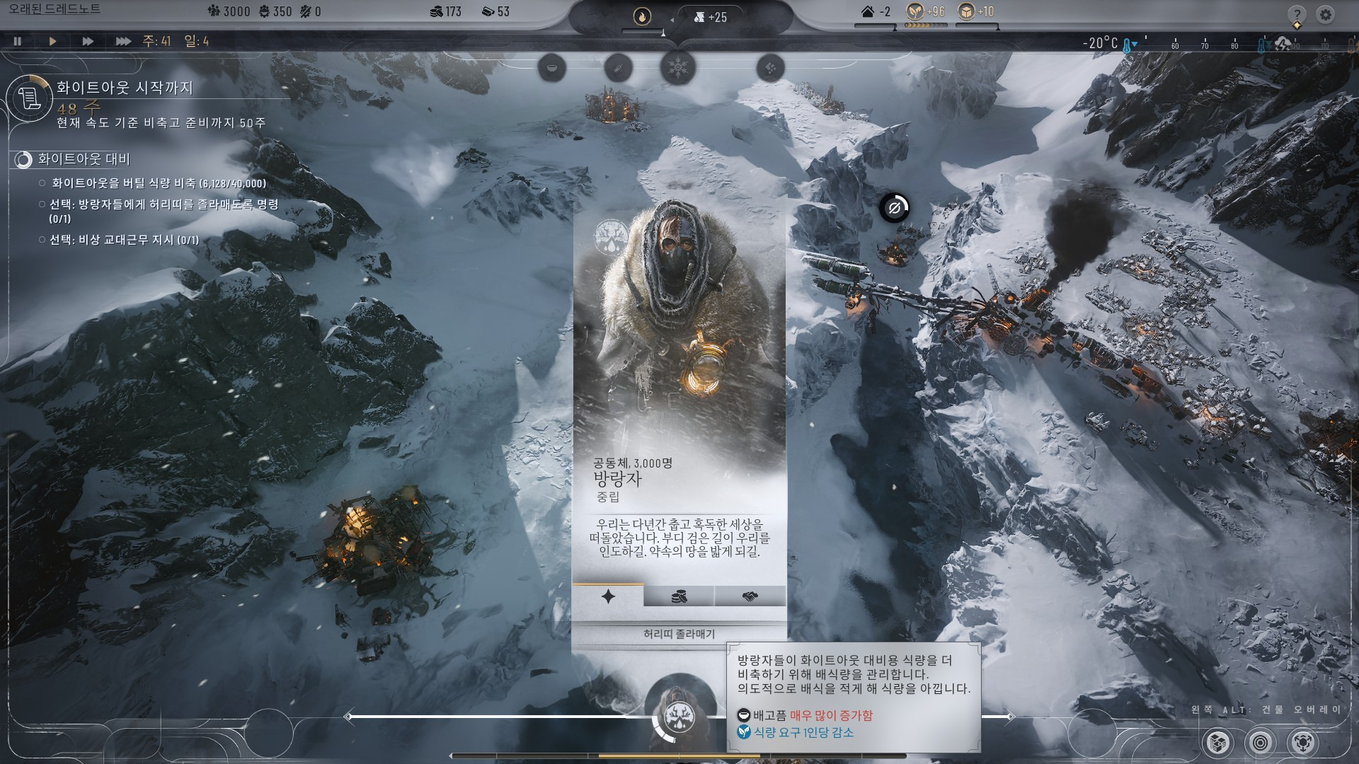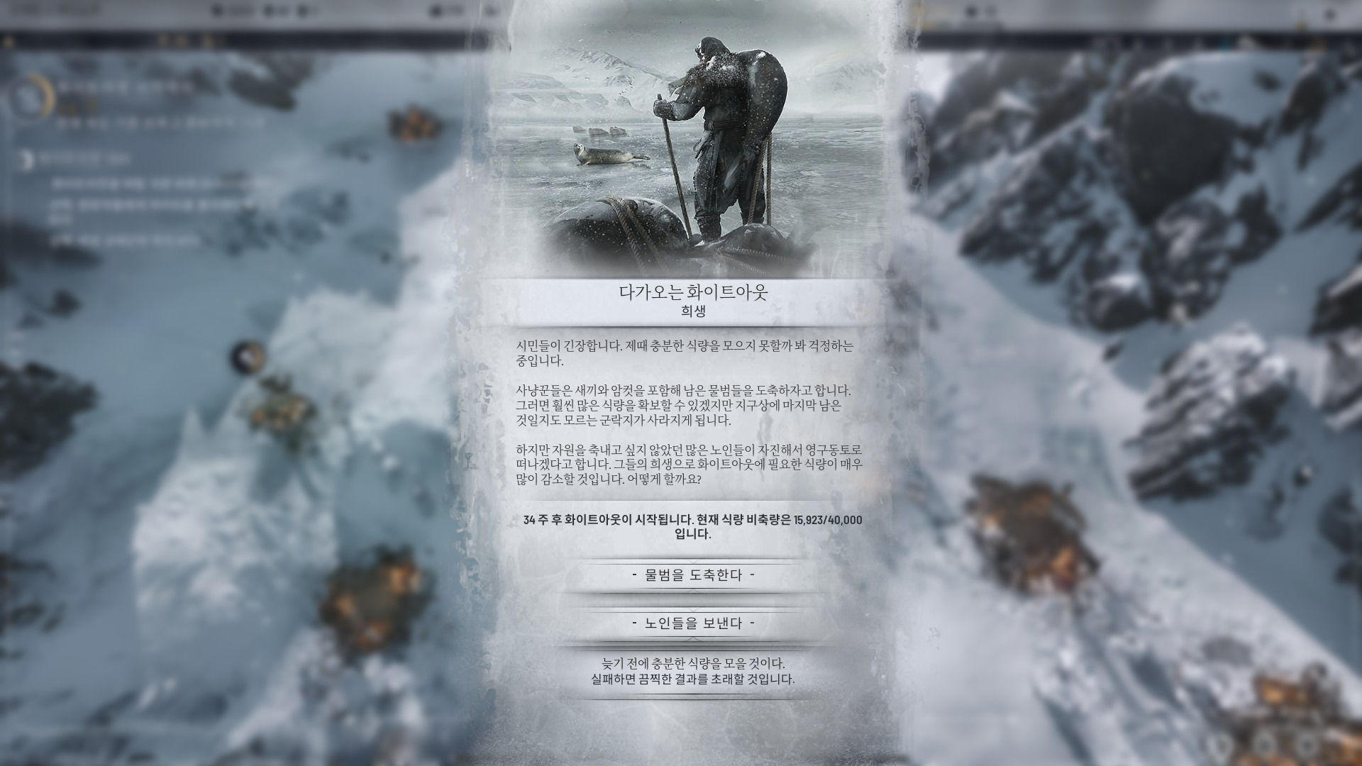 화이트아웃을 2주 남기고 식량 4만을 비축하는 데 성공합니다.