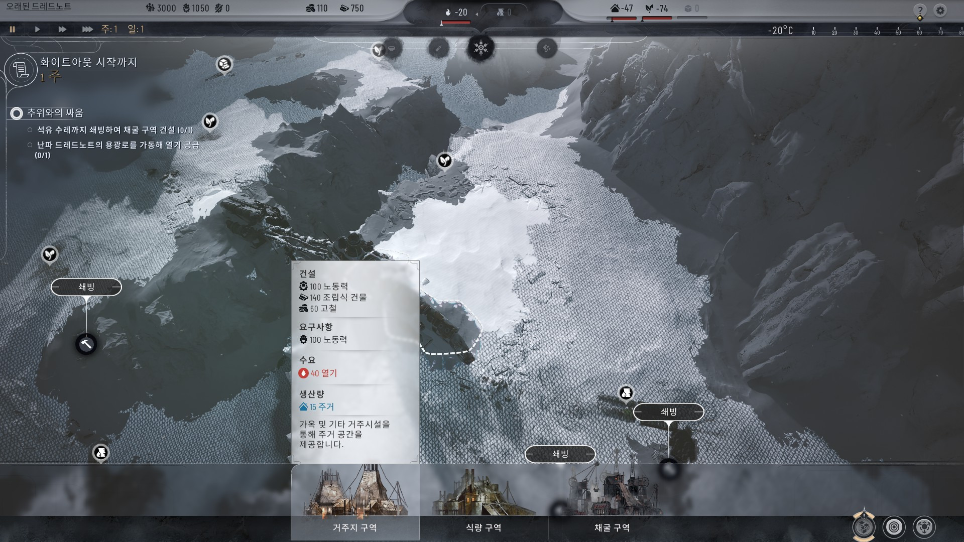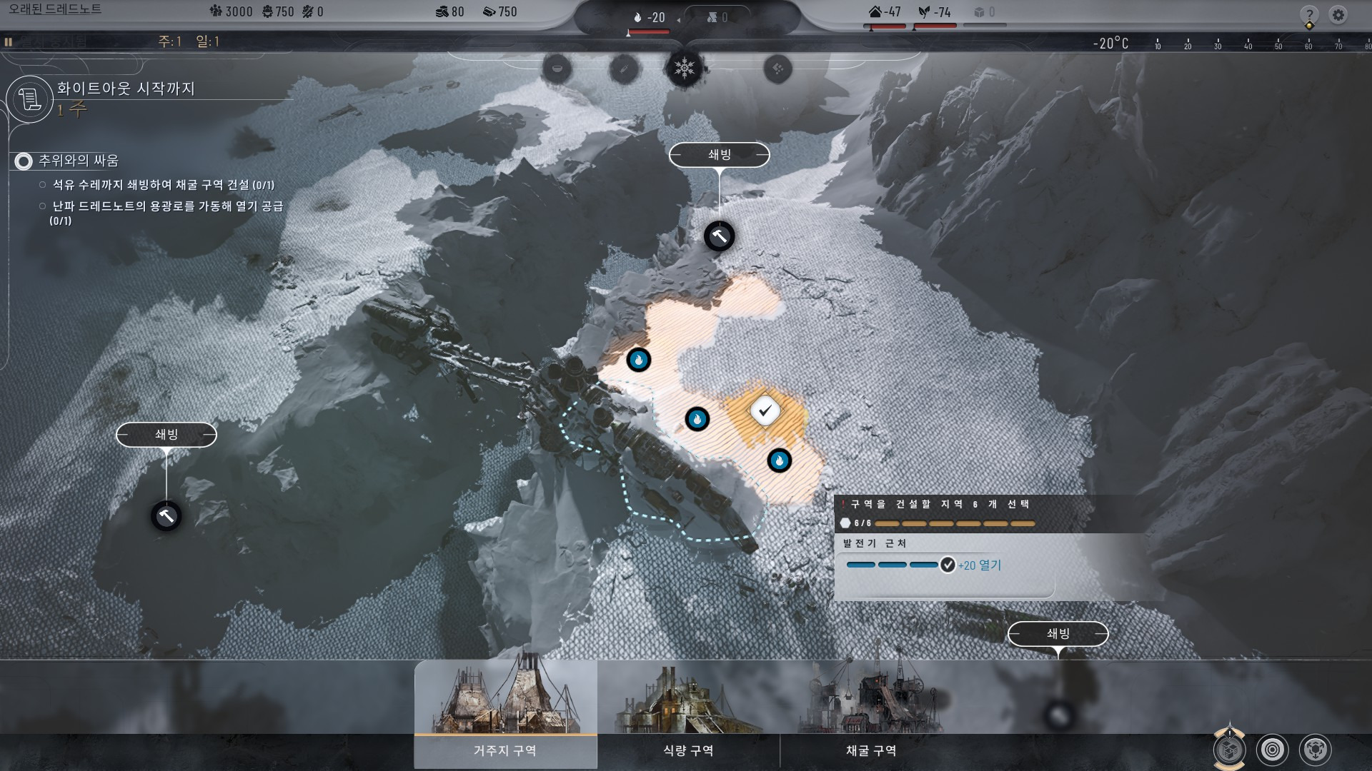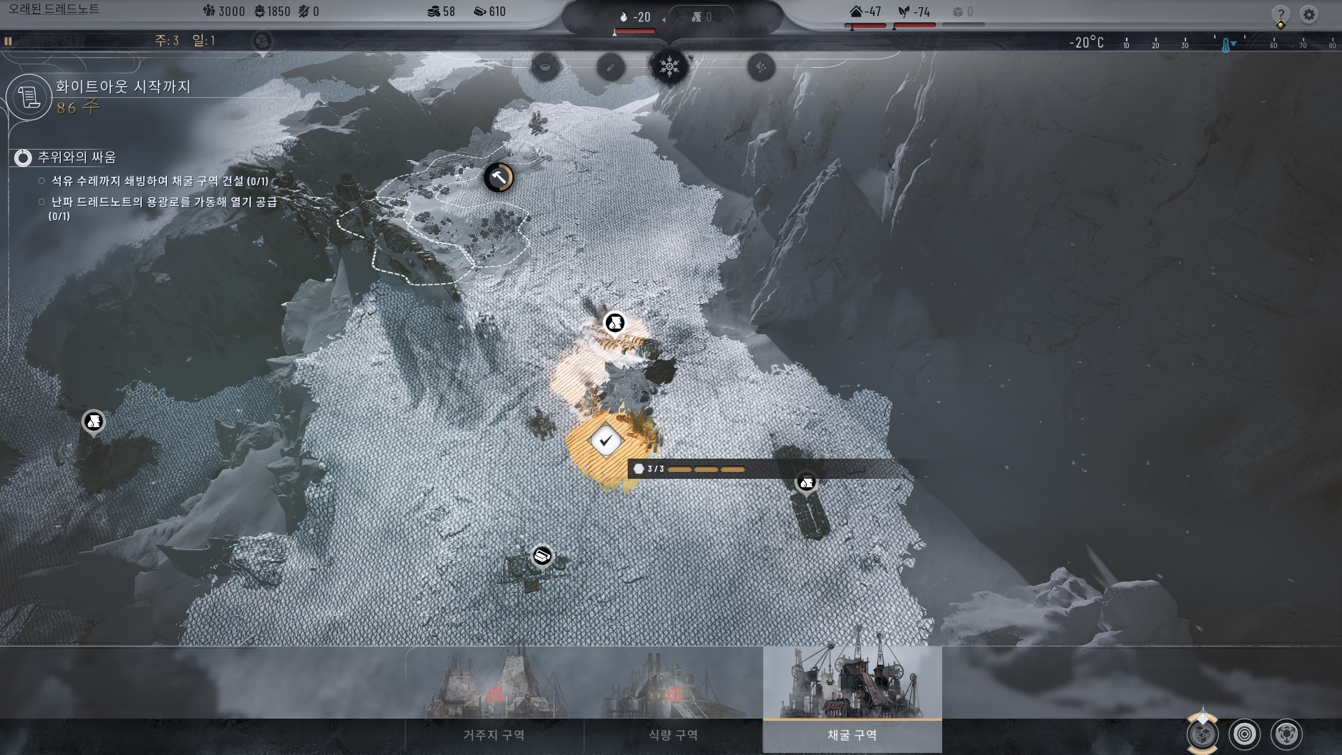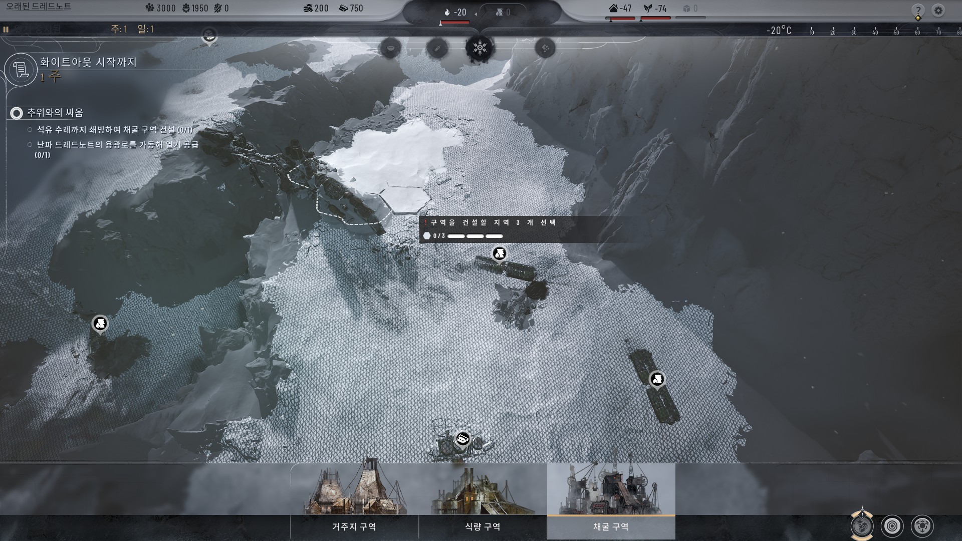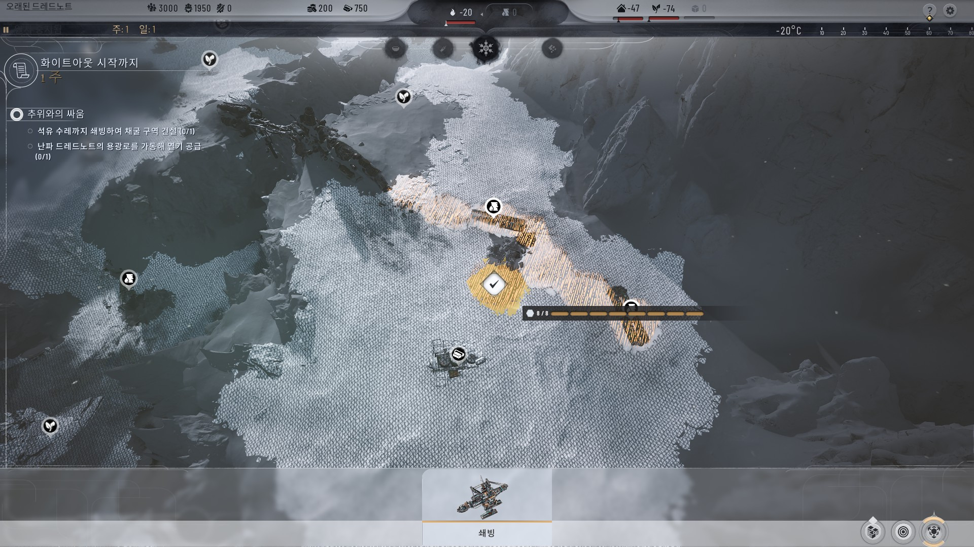 일단은 목표에서 요구하는 대로 석유 매장지에 채굴 구역을 건설해줘야 하는데... 두꺼운 얼음층에 막혀있어서 쇄빙을 해줄 필요가 있습니다.