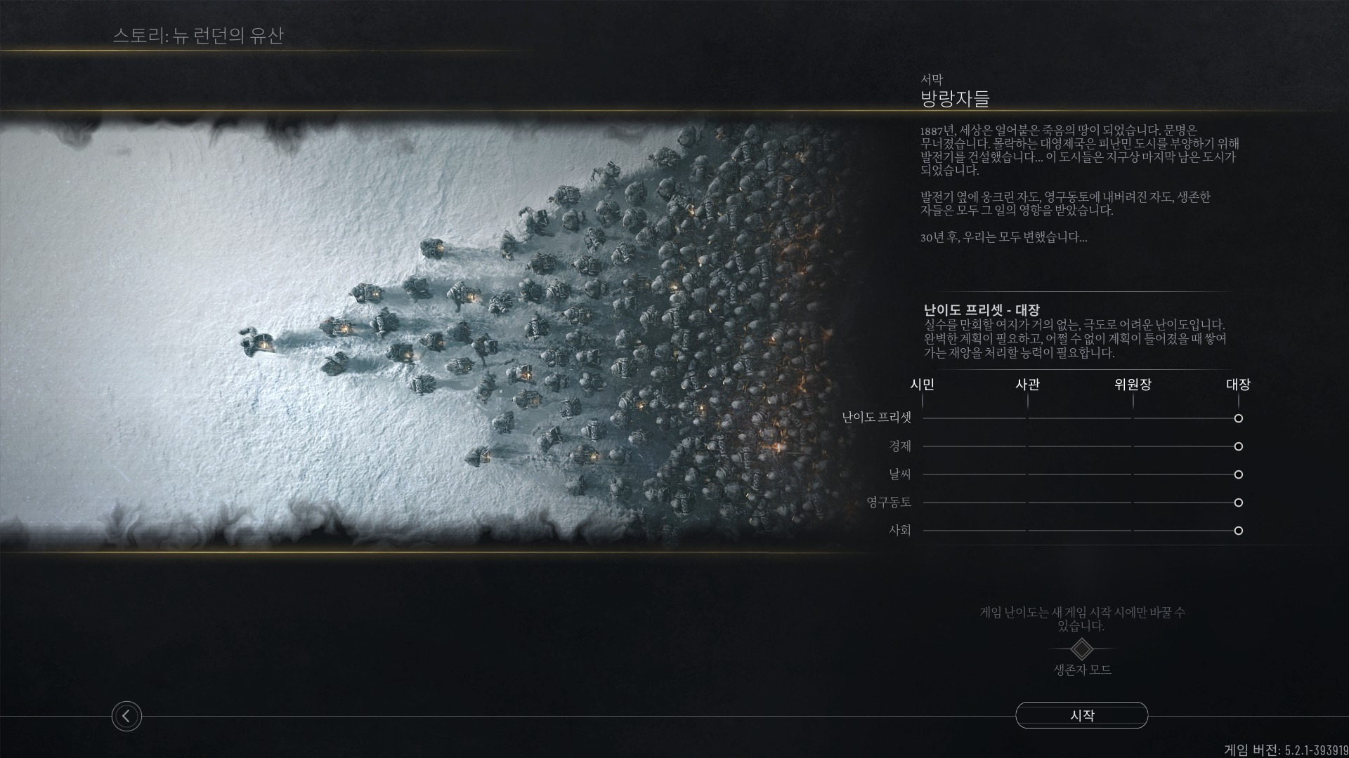 이번에 진행하게 되면 3회차가 되므로, 최고 난이도인 대장으로 설정. 다만 생존자 모드는 굳이 키지 않았습니다. 2회차 할 때는 생존자 모드 키고 했었는데 플레이 할 때 불편만 하지, 성취감적 요소가 별로 없어서 말이죠. 관련 업적도 없기도 하고...