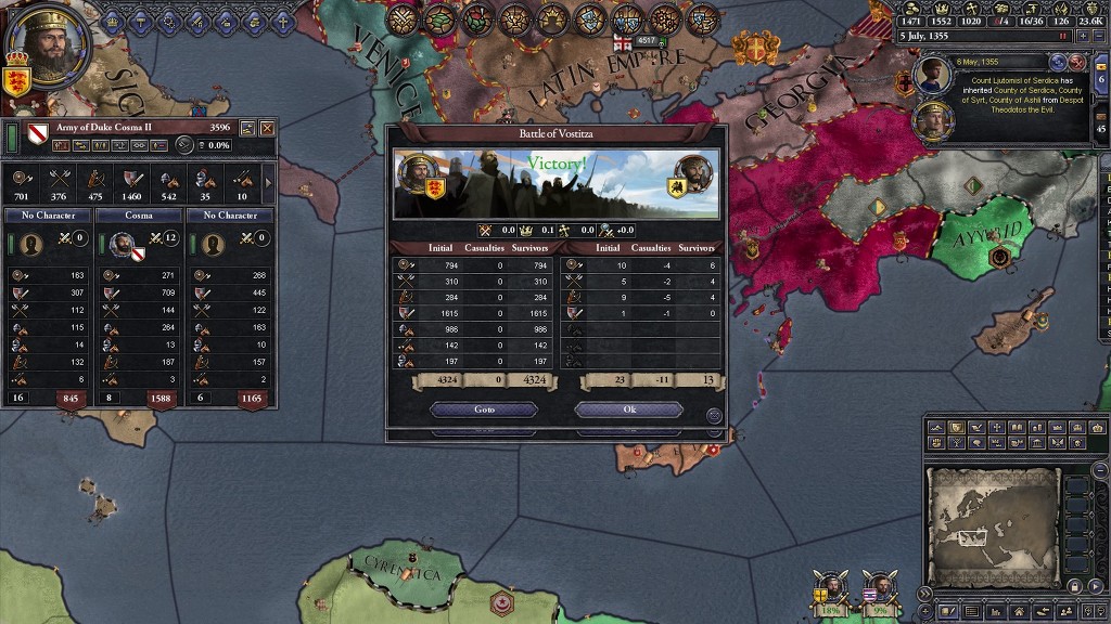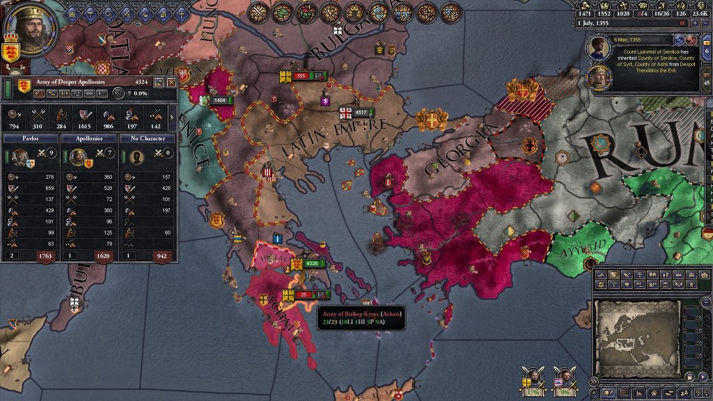 헬라스와 아카이아 정벌은 순조롭게 진행되고 있습니다. 사실 이정도 크기 가지고 순조롭지 않으면 그것도 이상(..)