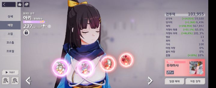 아키 오리진 예장 치확, 치피(치명타위력) 22세트로