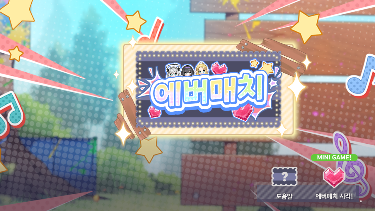 ㅇ 같은 정령을 나란히 놓아 터뜨려 점수를 얻는 3match 퍼즐 게임 <에버매치>가 진행됩니다.