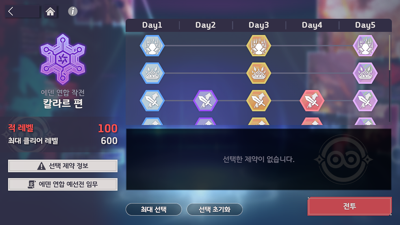 ㅇ 선택 제약 정보는 [에덴 연합 작전 → 에덴 연합 예선전 → 선택 제약 정보]를 통해 확인하실 수 있습니다.