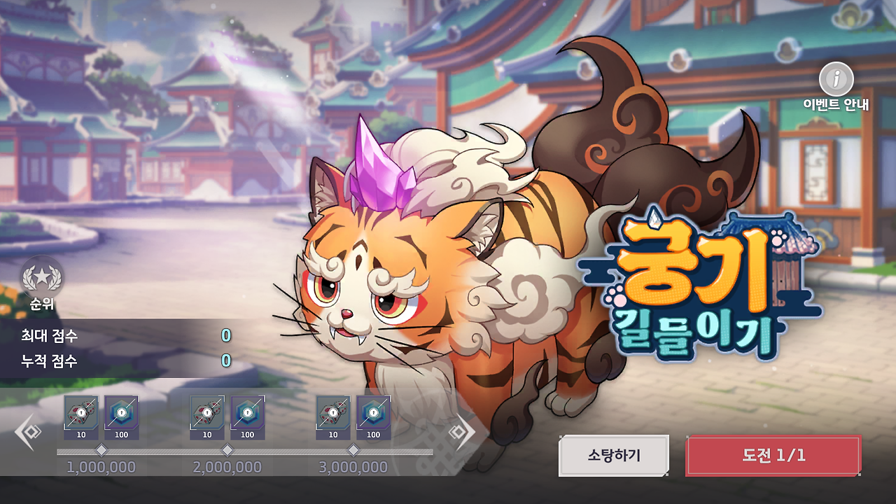 - 내용: 이벤트 기간 동안 미니 게임 [궁기 길들이기]가 진행됩니다. (하루 1회 참여 가능)