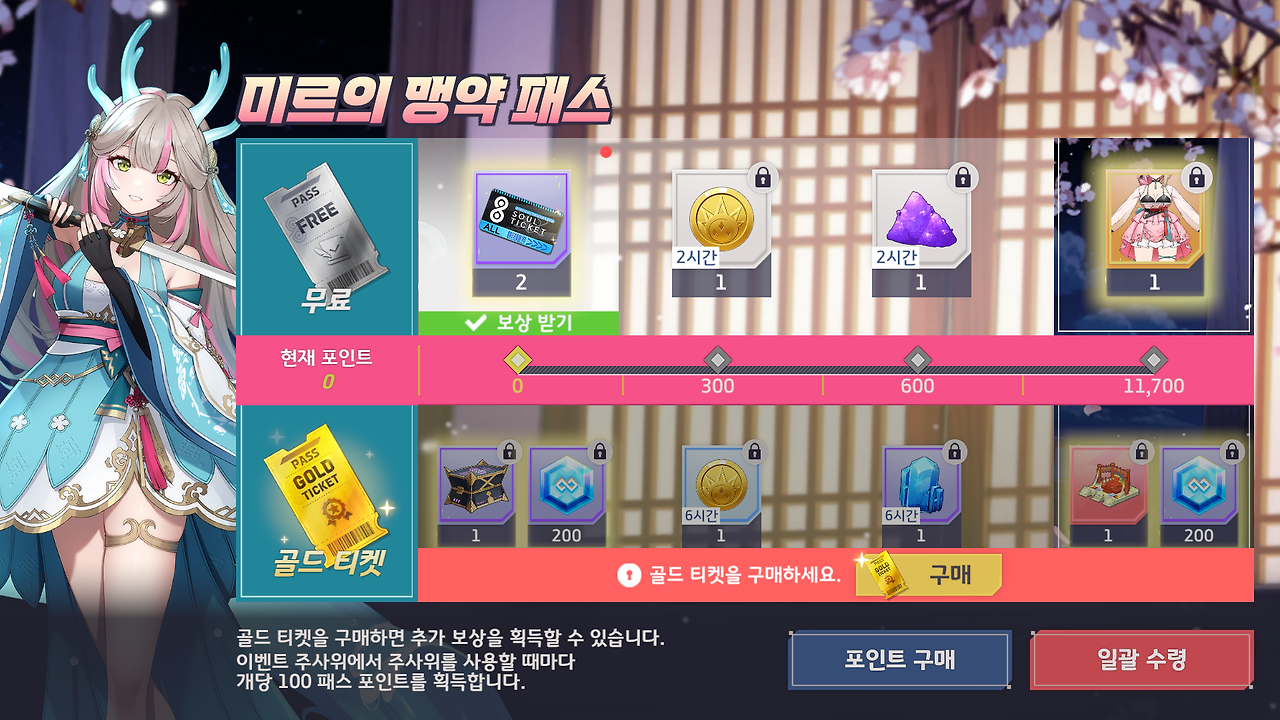 - 골드 티켓을 구매하면 <에픽 정령 소환권 선택 상자>, <지호(미르)의 대영주 옥좌> 등 더 많은 보상을 획득할 수 있습니다.