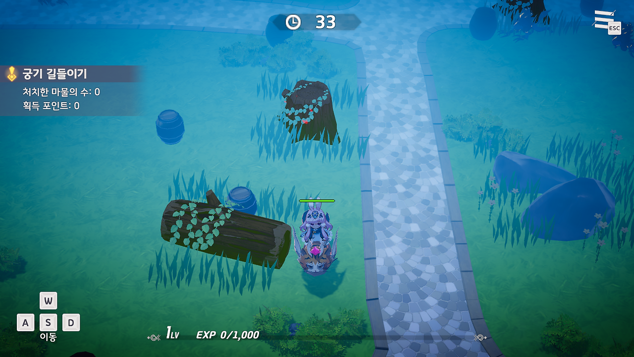 - [궁기 길들이기]는 '순이'와 함께 주어진 시간 동안 날뛰는 궁기 위에 올라타 몬스터 처치, 오브젝트 파괴를 통해 사나운 궁기를 진정시켜야 하는 미니 게임입니다.
