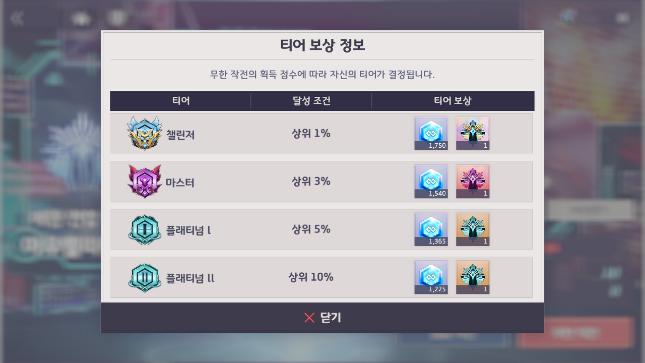 - 무한 작전 임무 보상은 이벤트 기간 내 1회만 획득할 수 있습니다.