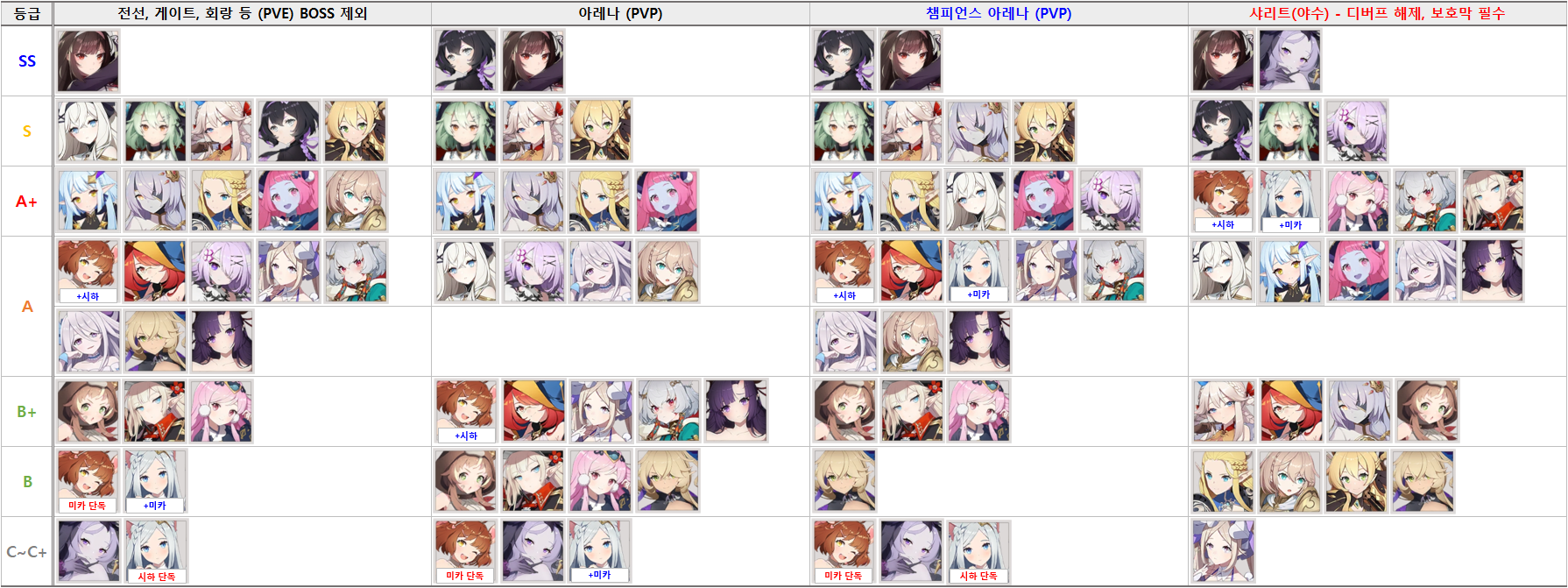 *메피는 기존 아레나 B+로 판정했지만, 아직까지는 준수한 딜러로 활용되는 면이 있어 A로 상향했습니다. (2/25)