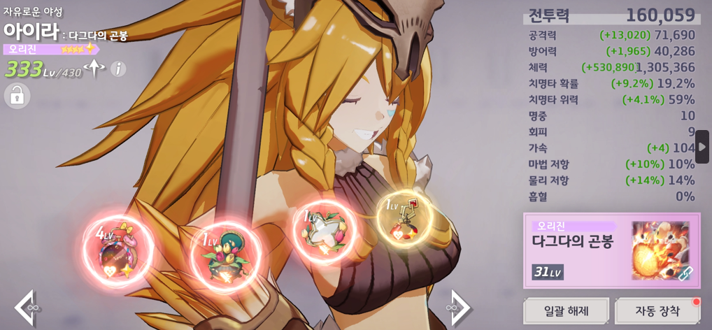 - 아이라의 경우 초반에 서술했다시피 딜탱이기 때문에 어느 정도 강화가 받쳐줘야 활약을 할 수 있는 정령이라고 볼 수 있습니다.
