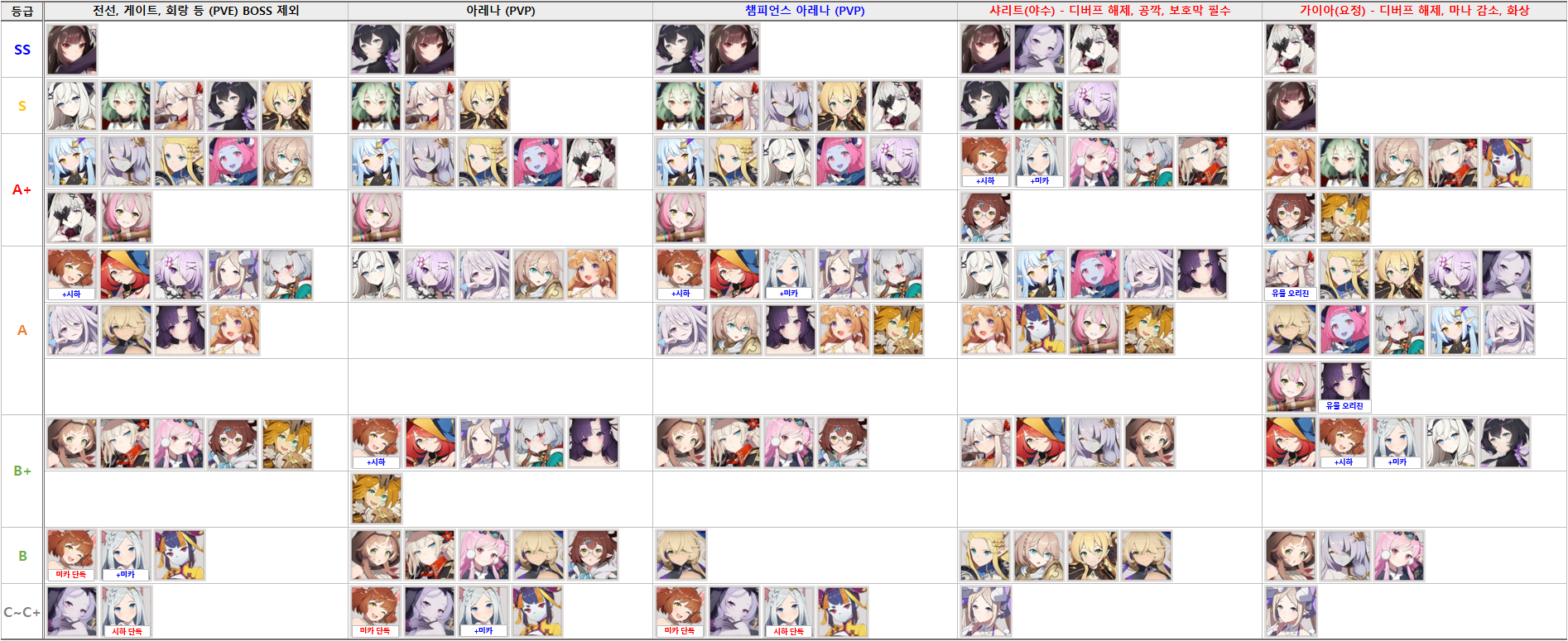 *메피는 기존 아레나 B+로 판정했지만, 아직까지는 준수한 딜러로 활용되는 면이 있어 A로 상향했습니다. (2/25)