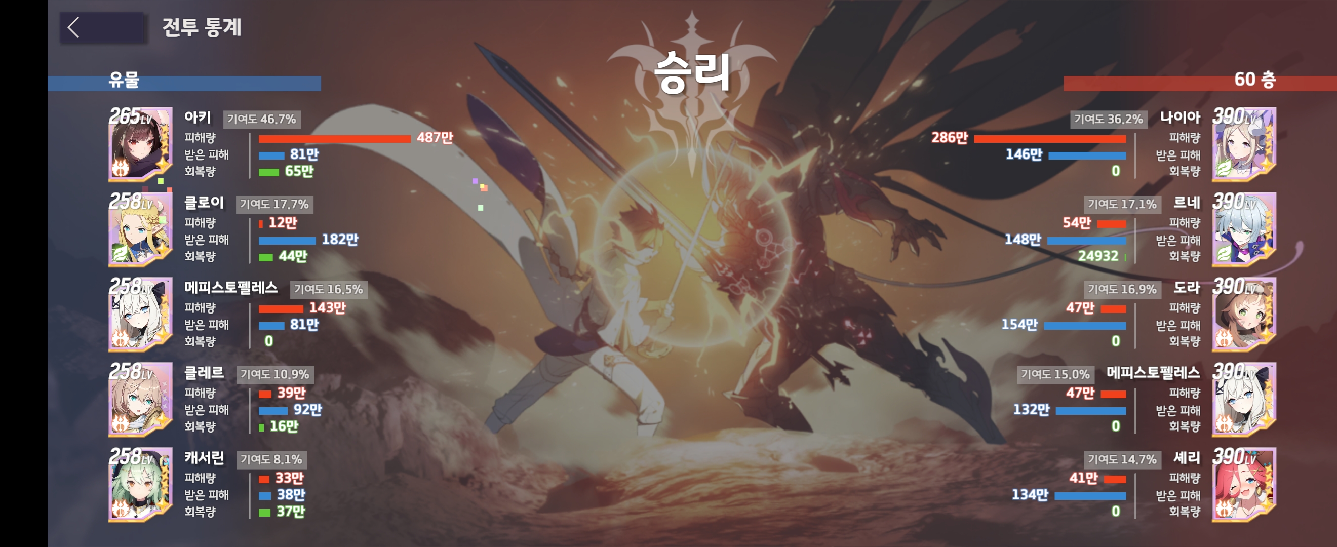 60층은 메피가 아키보다 공이 높아야 합니다