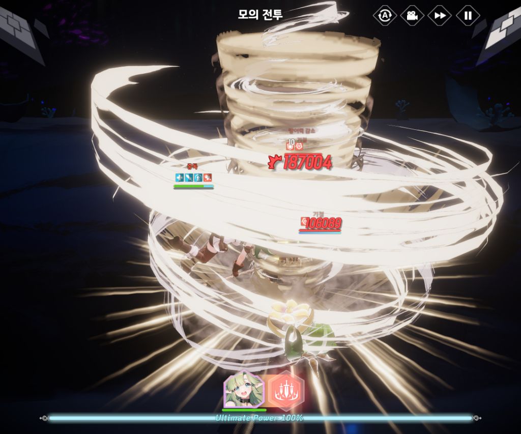 정확한 비교를 위해 둘 다 행동패턴 1사이클이 끝나고 메인스킬을 썼습니다.