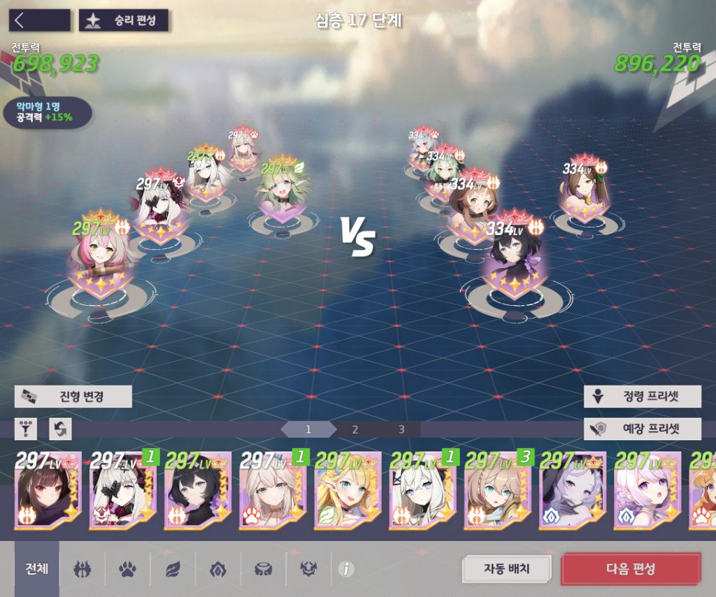 마지막으로 진형과 조합!