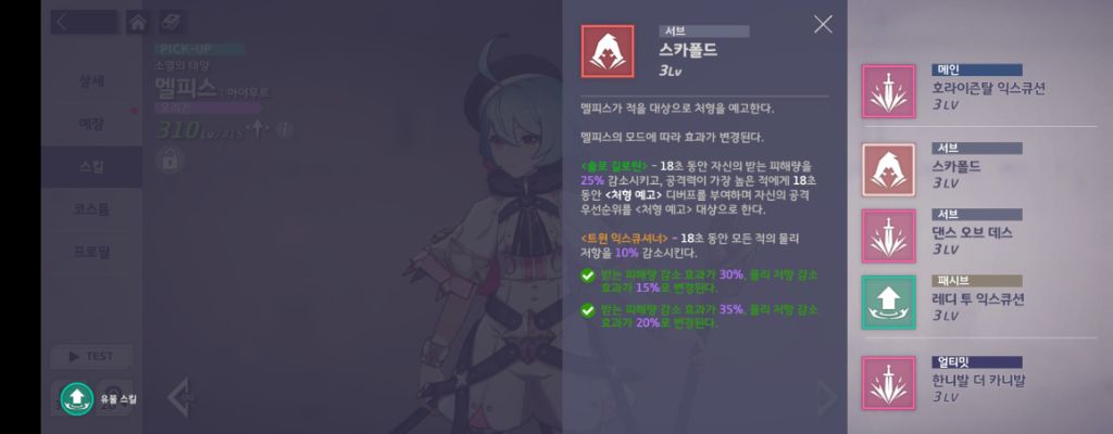 멜피스는 서브스킬로 인해 전장에서 공격력 높은 적을 타겟으로 합니다.